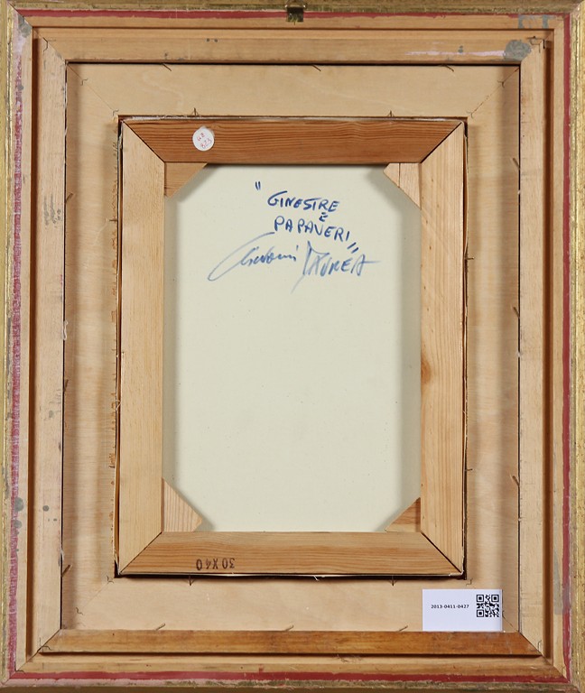 DAUREA GIOVANNI (n. 1955) Ginestre e papaveri. Olio su tela . Cm 40,00 x 30,00. Firma in basso a destra. Al retro titolo e firma. Cornice presente
