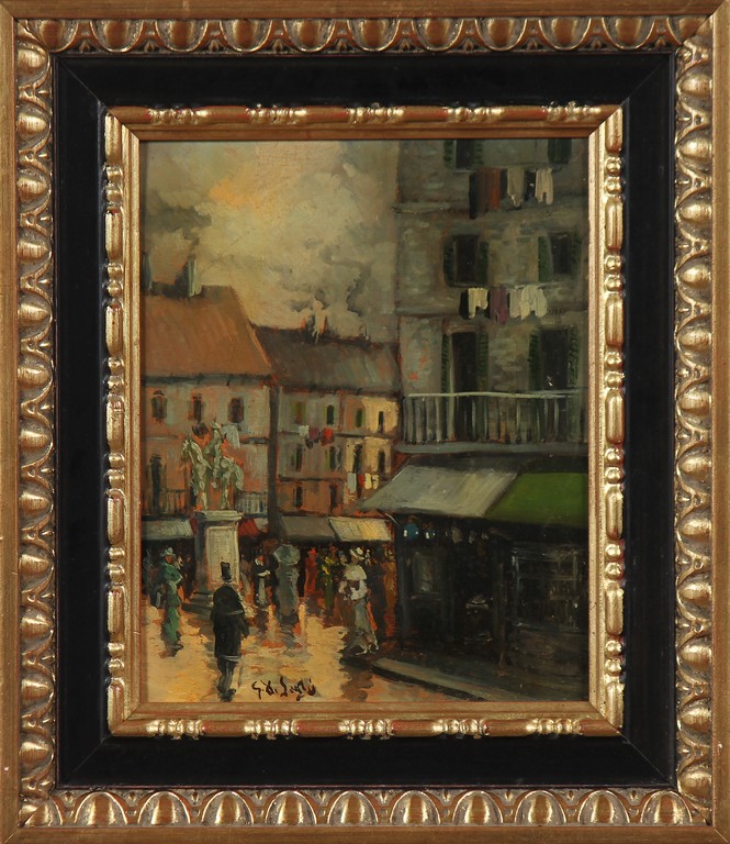 Lotto 800 | ANONIMO Piazza. Olio su tavola. Cm 24,00 x 30,00. Firma G. De Sanctis in...
