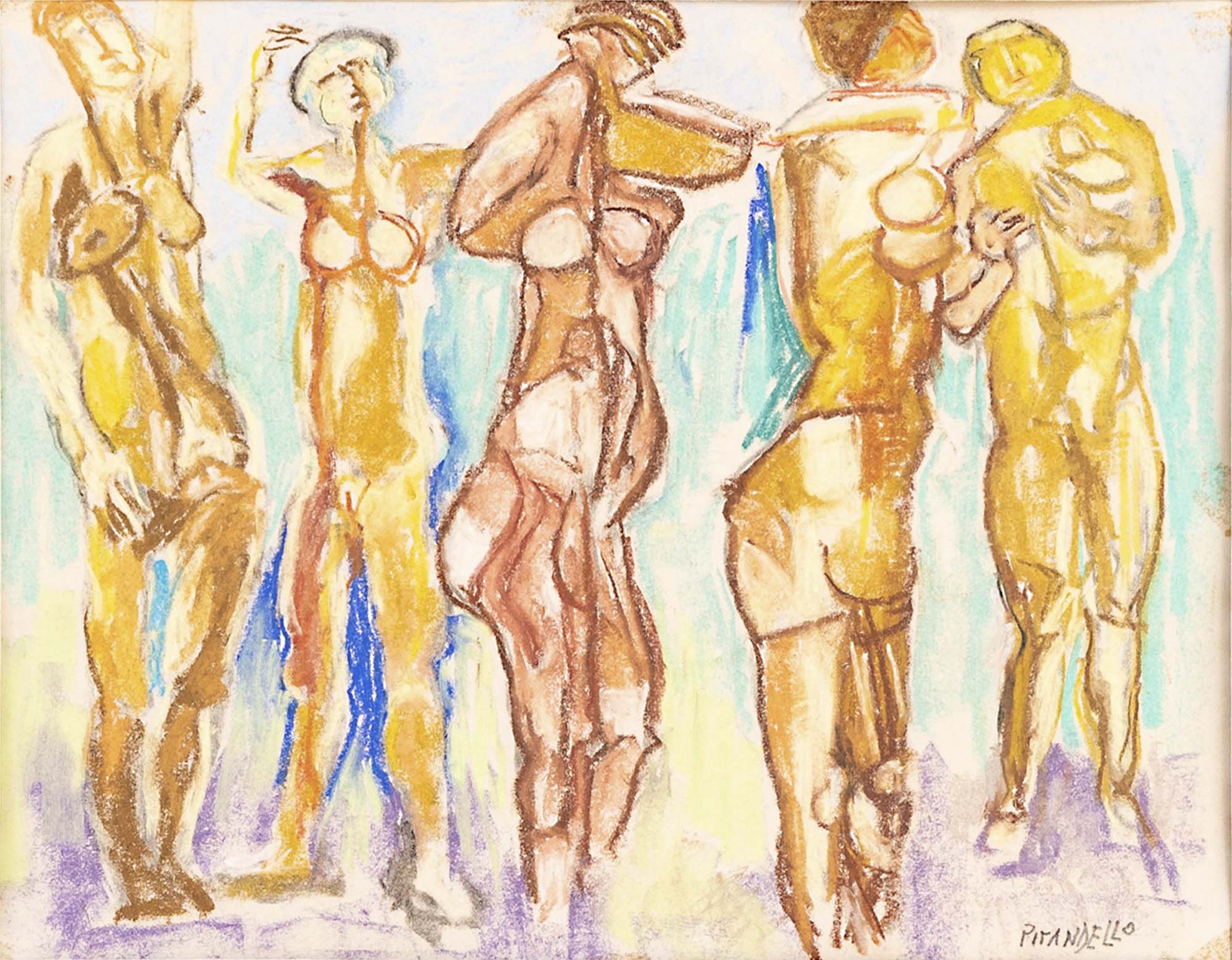 FAUSTO PIRANDELLO (Roma, 1899 - 1975) Figure (1960) pastelli su carta cm....