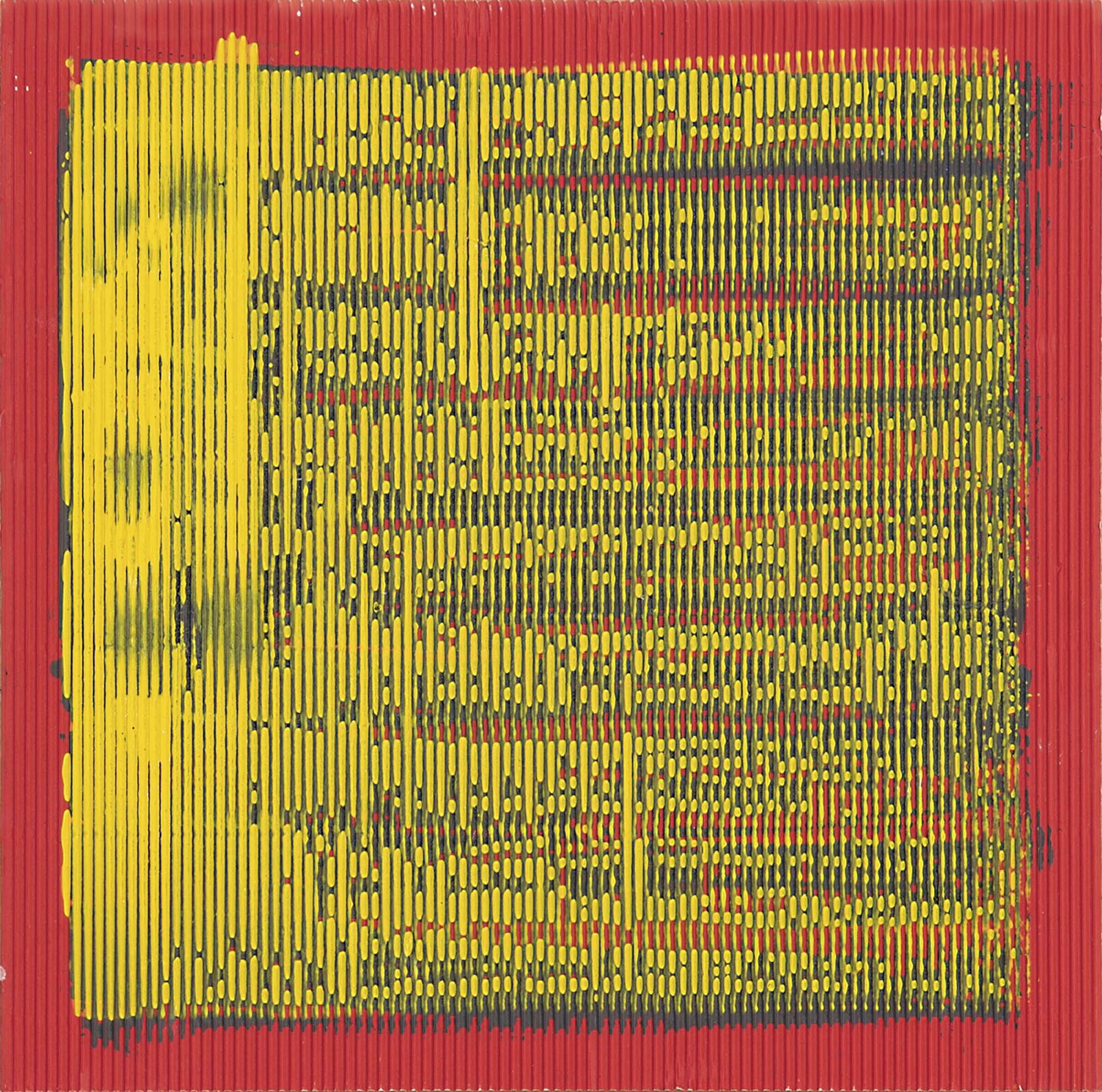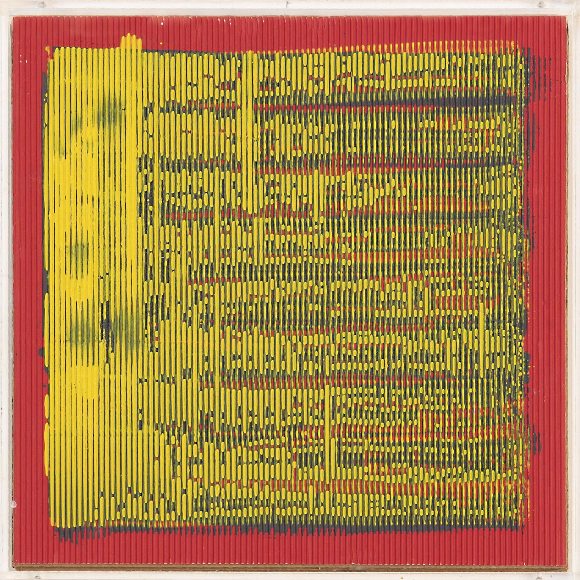 tecnica mista su cartoni entro teca di plexiglass cm.35x35