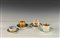 Lotto composto da quattro tazze con relativi piattini in porcellana dipinta a...