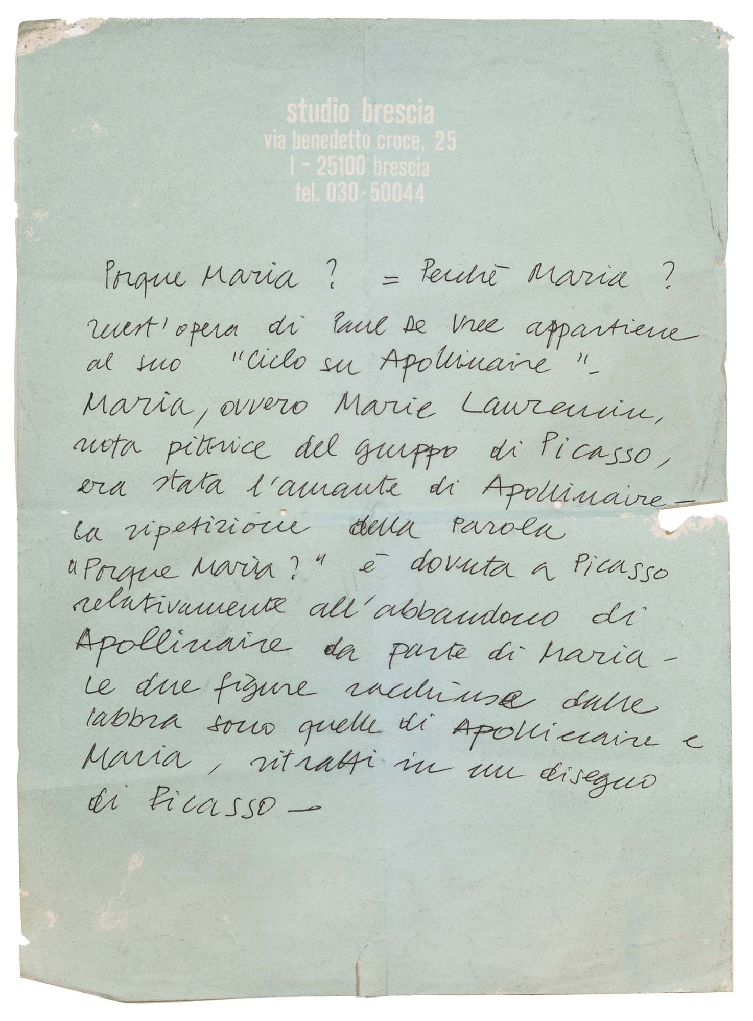 Porqué Maria? - Dal "Ciclo su Apollinaire" 1968