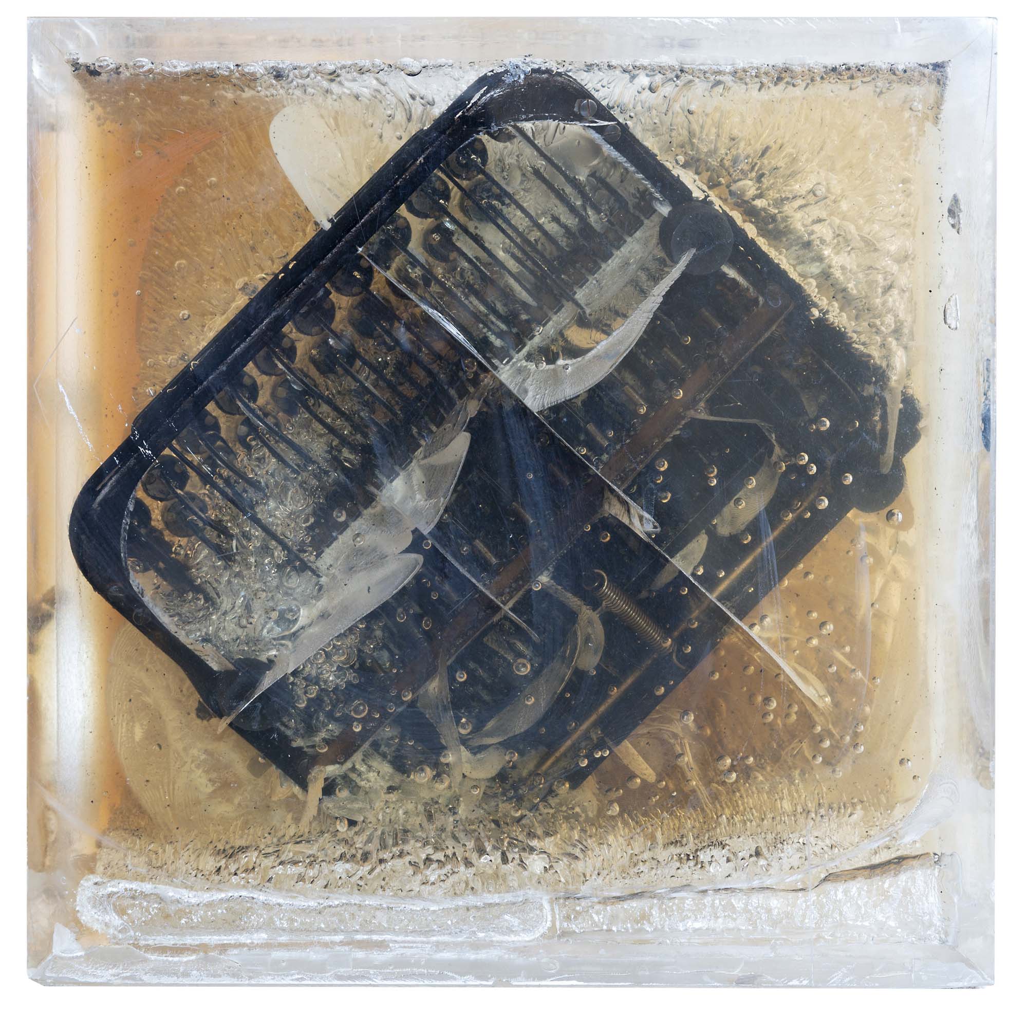 ARMAN FERNANDEZ (Nizza, 1921 - 2005) Cube (machine a ecrire dans plexiglass)...