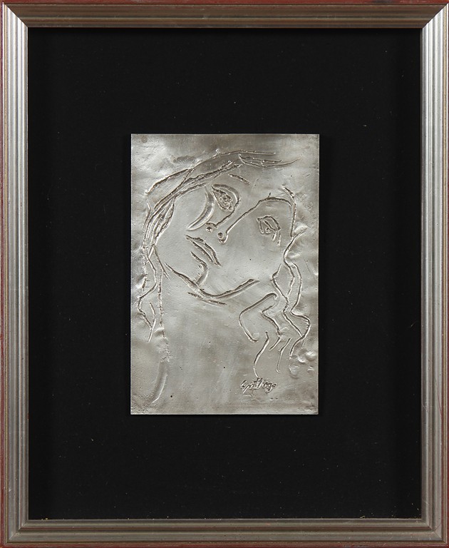GUTTUSO RENATO (1912 - 1987) Senza titolo. Bassorilievo su metallo argentato. Cm 19,50 x 29,50. Firma in basso. Al retro cartiglio descrittivo dell'opera. Cornice presente
