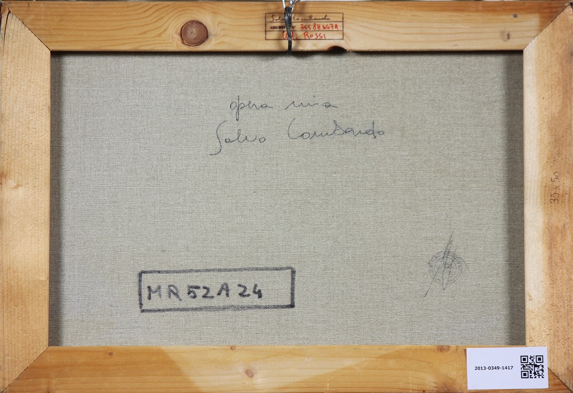 LOMBARDO SALVO (n. 1948) Tetti rossi. Olio su tela . Cm 50,00 x 35,00. Firma in basso a destra. Al retro firma per autentica e timbro con numero d'archivio. Autentica dell'artista su fotografia.