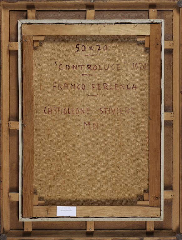 FERLENGA FRANCO (1916 - 2004) Controluce. 1970. Olio su tela . Cm 50,00 x 70,00. Firma e data in basso a destra. Al retro firma, titolo e data. Cornice presente