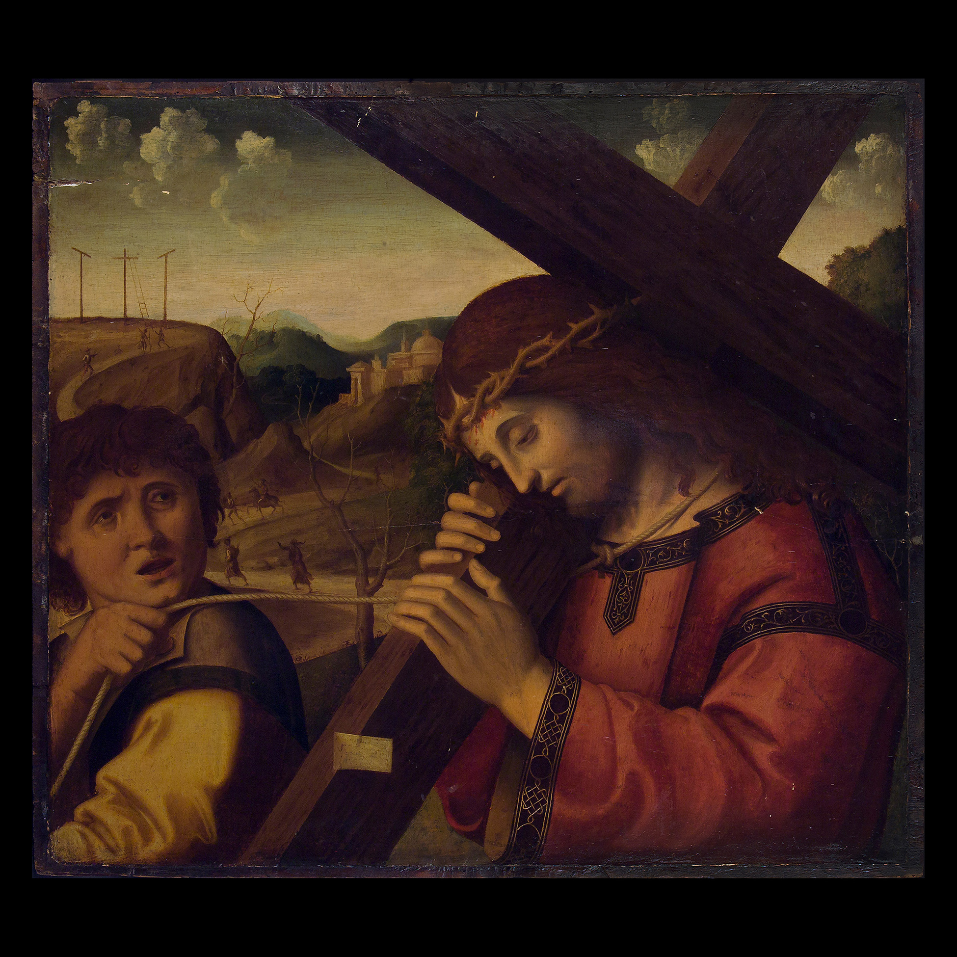 Marco Palmezzano (Forlì, 1459 – 1539), attr.a, Cristo portacroce con un manigoldo