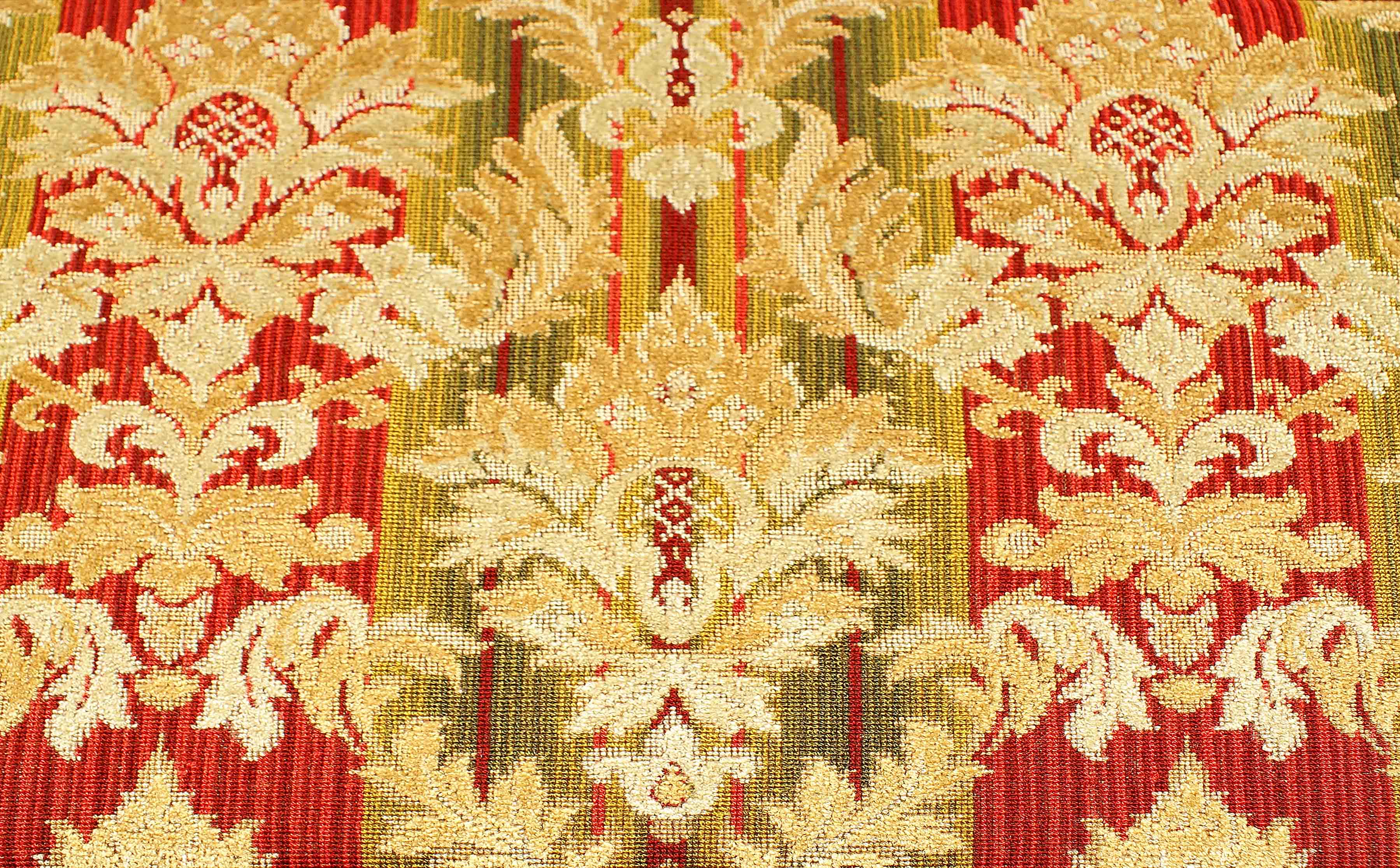 Pezza broccato disegno '800, fondo rosso-verde, m. 9 circa, h. cm. 140.