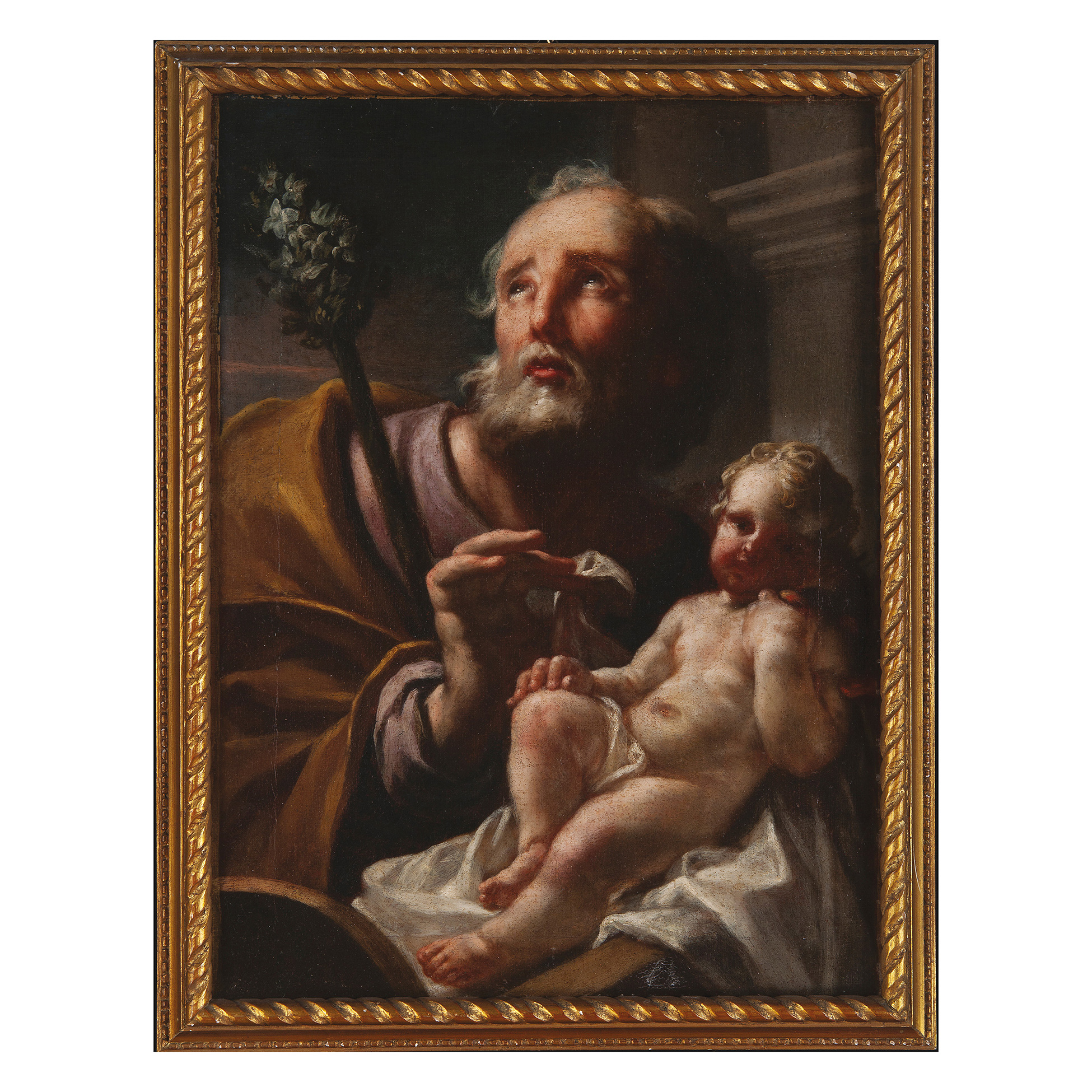 La produzione del pittore Bartolomeo Biscaino risente molto delle sue vicende personali: formatosi nella sua città natale - Genova – morirà a soli 28 anni a causa della terribile peste che colpì la città nel 1656. Suo padre, modesto pittore paesaggista, fu il suo primo maestro; ma un più grande impatto su di lui lo ebbero le tele di Guido Reni nella chiesa del Gesù e quella di Giulio Romano nella chiesa di Santo Stefano. Nel 1650 è alla scuola di Valerio Castello, dal quale erediterà i toni della sua tavolozza, rendendoli però più sfumati nel tratto e la composizione delle figure, che risente dell’esperienza del Procaccini e del Correggio. In questo San Giuseppe con Bambino ritroviamo molti di questi caratteri: è evidente una dipendenza dagli esempi sopracitati nella stesura dei colori e nella composizione, che però il Biscaino rende molto equilibrata, così come bilanciata nelle masse. Di certo l’artista non ebbe modo di sviluppare appieno il proprio stile a causa della morte prematura, ma ciò che è indubbia è la qualità della sua prima produzione artistica, raffinata e ricettiva rispetto agli sviluppi della pittura genovese della prima metà del secolo e dagli esempi celebri conservati nella propria città. Da evidenziare è anche la delicata attenzione riservata dal pittore alla resa del volto e dell’espressività di San Giuseppe, delicata e sommessa, priva di patetismo.. Olio su tela, cm est. 57x44, int. 51.5x38