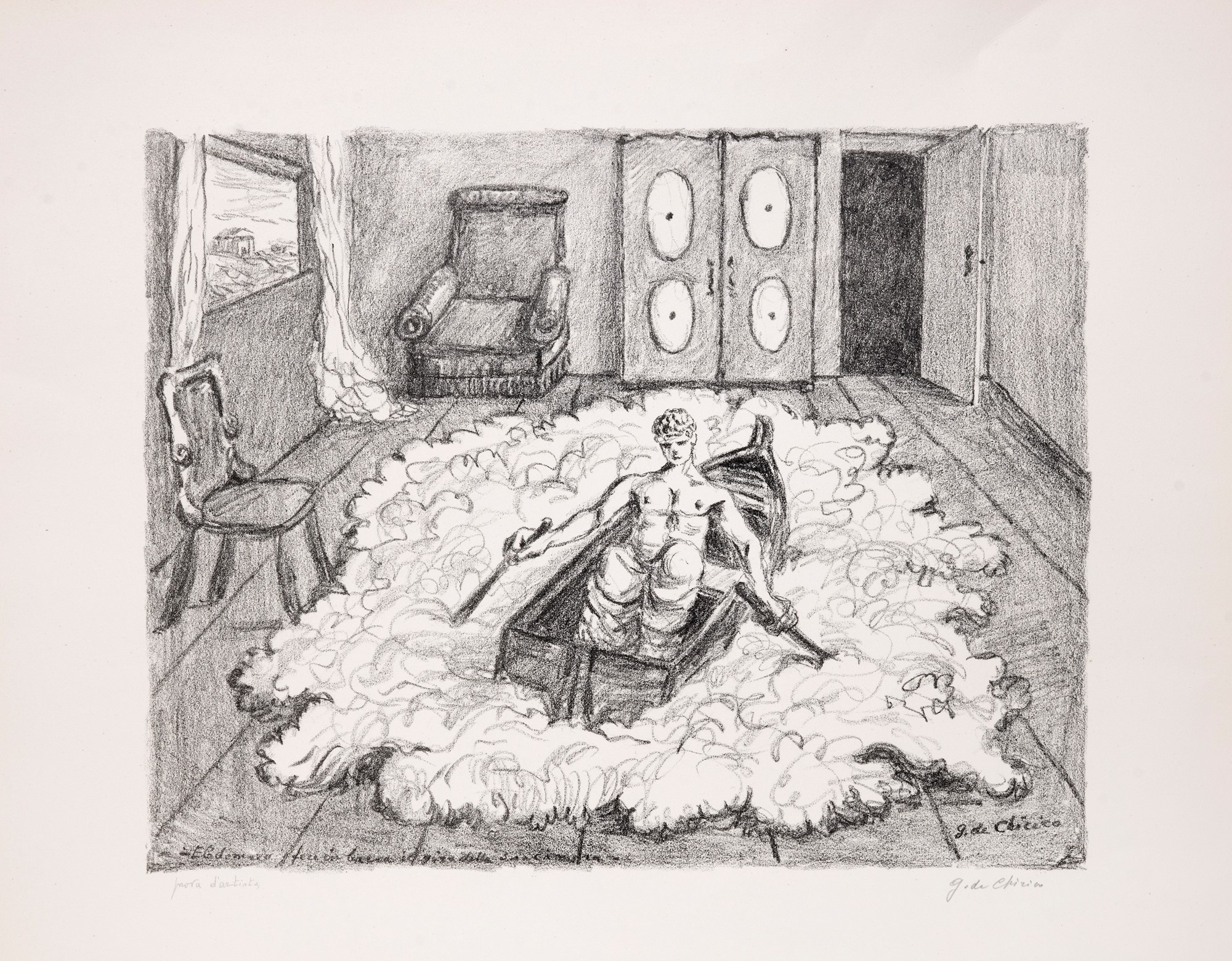 Giorgio de Chirico (Volos 1888-Roma 1978) - Ebdomero fece in barca il giro della sua stanza, 1968