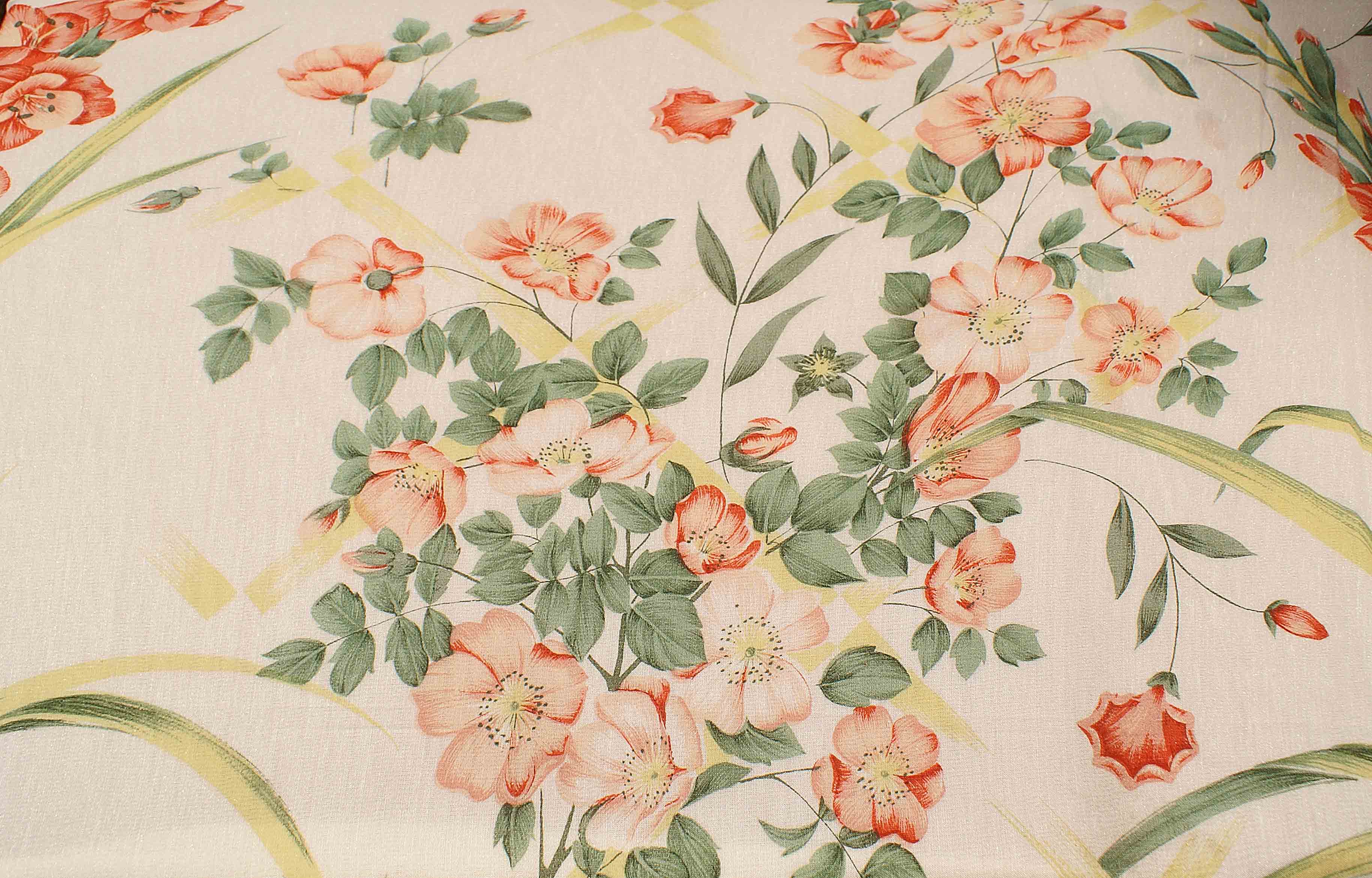 Pezza stoffa per tendaggi a fiori arancioni, fondo avorio, m. 35 circa, h. mt 3.