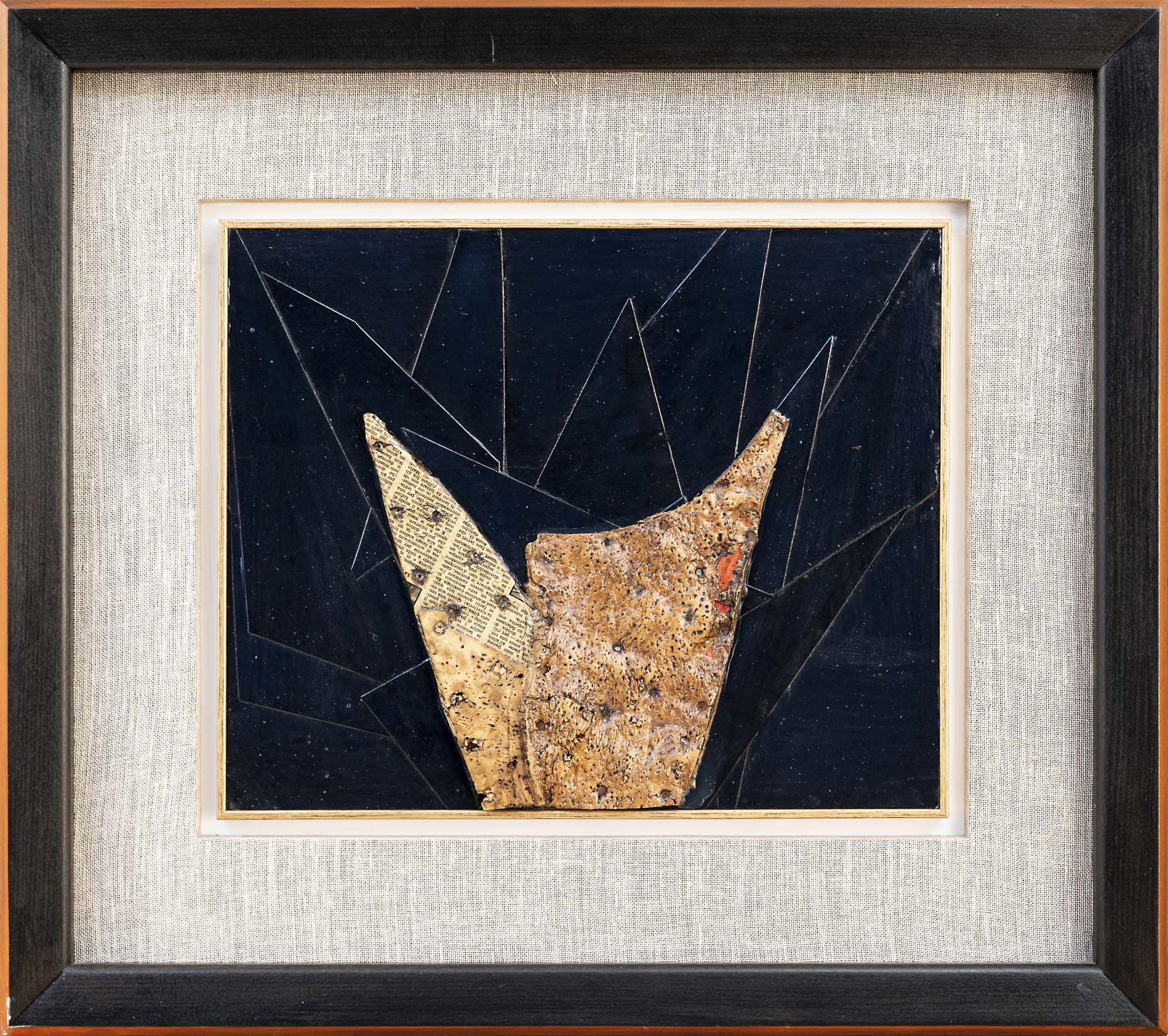 tecnica mista, collage e sughero su tavola cm. 33,5x41