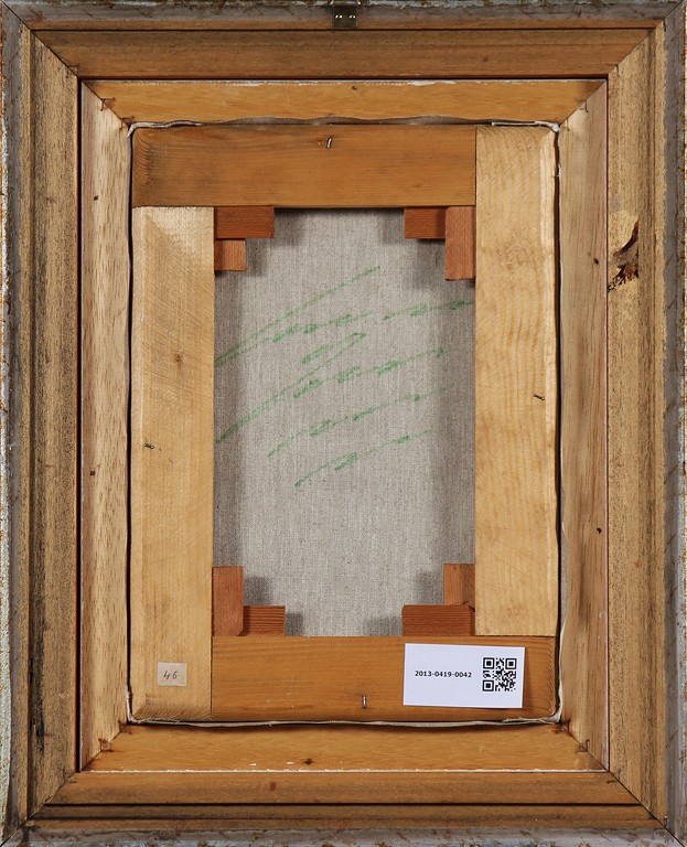 TRECCANI ERNESTO (1920 - 2009) Faccina. Tecnica mista su tela. Cm 25,00 x 35,00. Firma in basso a destra e al retro. Autentica dell'artista su fotografia. Cornice presente
