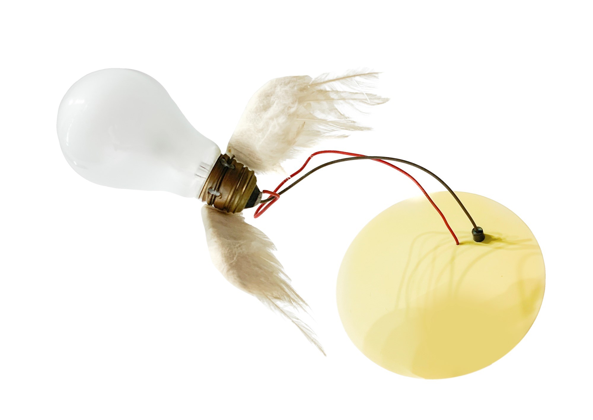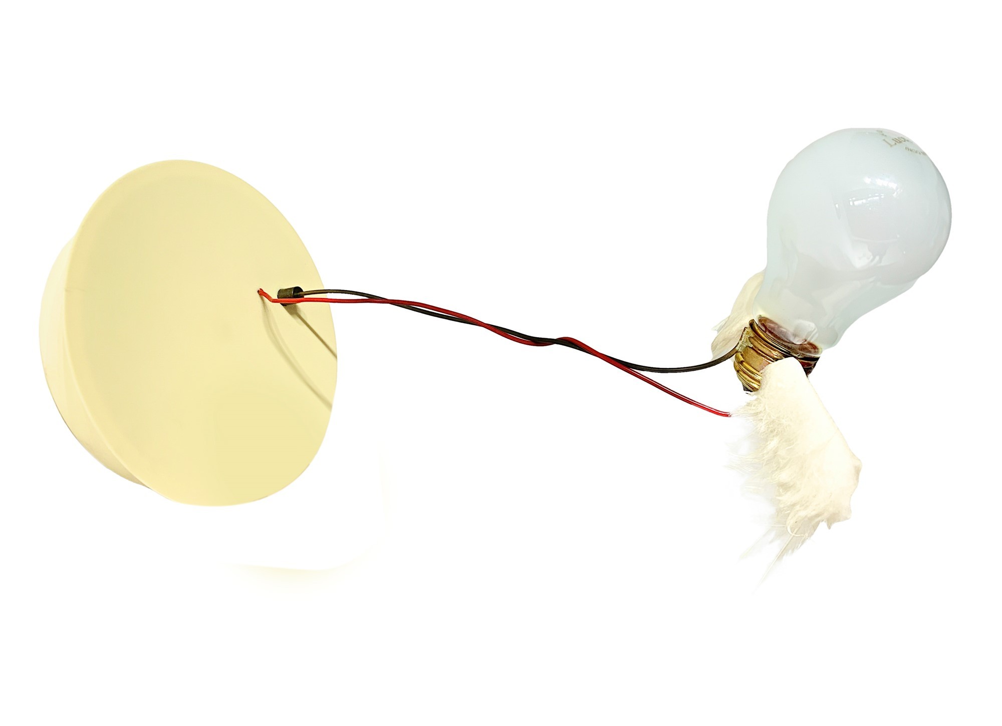 Ingo Maurer (1966) - Tre applique modello Lucellino H 27 cm Produzione M.Maurer, disegno Ingo Maurer, diffusori a guisa di volatile, base in plastica beige. Segni d'uso.