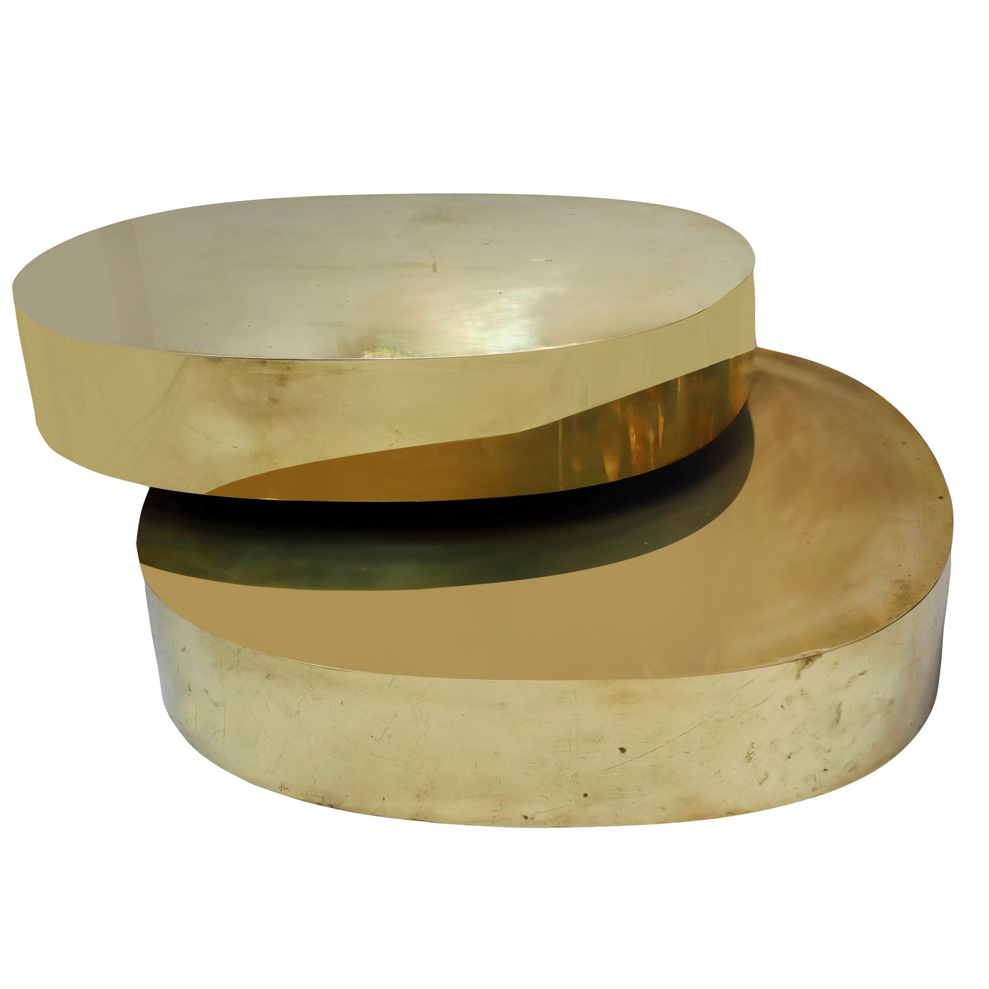 Gabriella Crespi (1922 Saronno-Milano 2017) - Iconico Tavolo basso Scultura della serie Plurimi con struttura in ottone. , Italy, 70s Chiuso H cm 41x cm 80x cm 60, Aperto H cm 41x cm 97x cm 75 Prima Edizione. Prod. Crespi, Marchio originale.