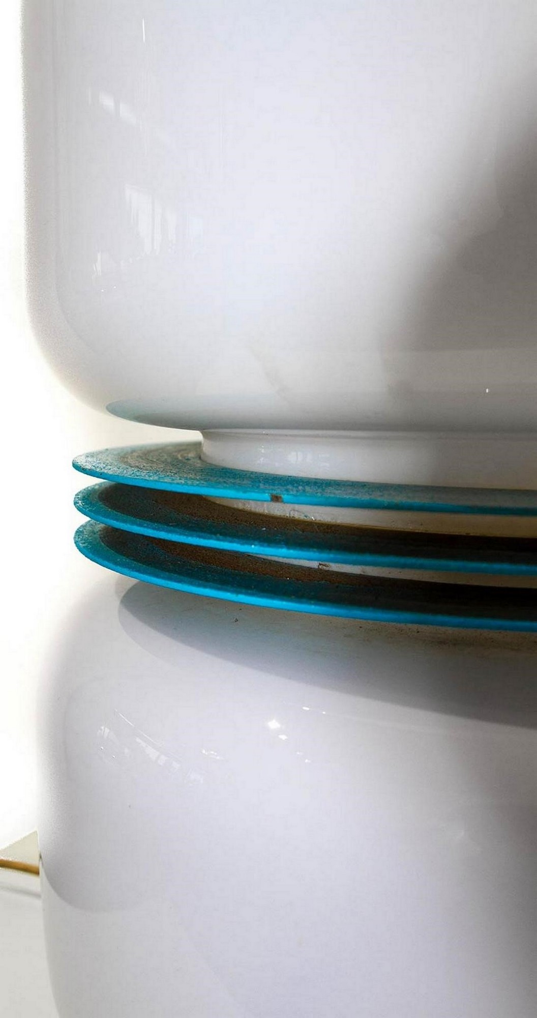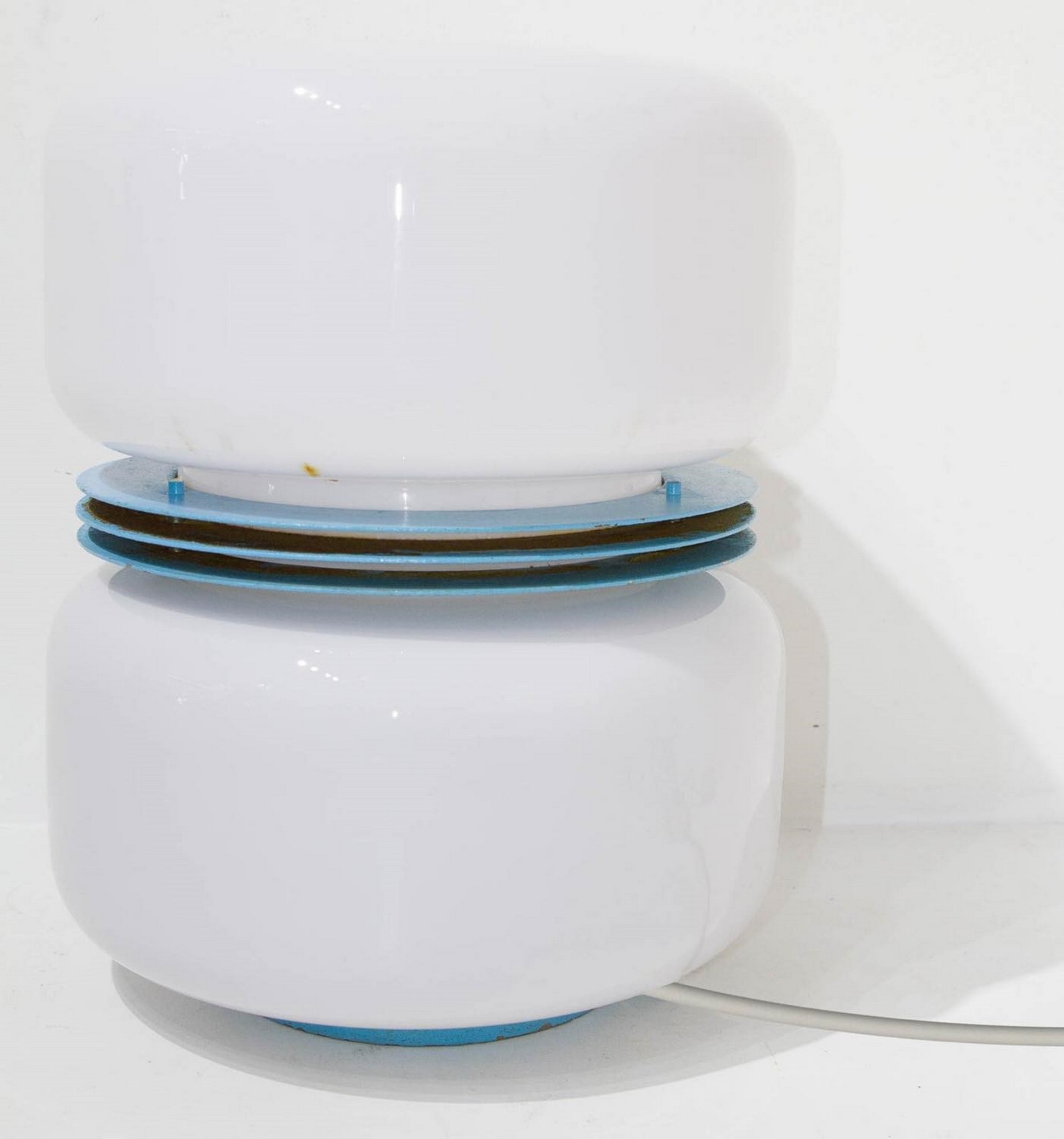 Stilux - Stilux, lampada da tavolo in vetro e metallo laccato azzurro anni 60. H cm 30, diametro cm 30. Segni d'uso