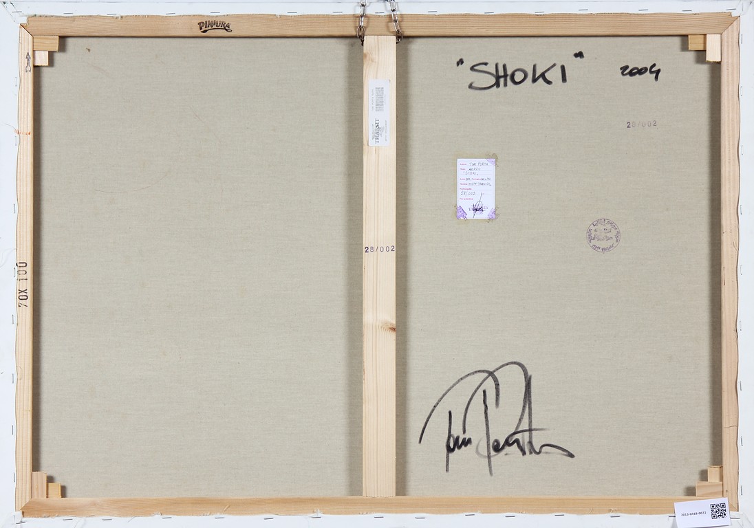 PORTA TOM (n. 1966) Shoki. 2004. Olio su tela . Cm 100,00 x 70,00. Firma in basso a destra. Al retro firma e cartiglio della Galleria Transit.