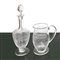10 flute, 11 acqua, 11 da vino + 1 boccale e 1 bottiglia. Creato ne 1930 in occasione dellEsposizione Coloniale di Parigi, decoro di rinceaux inciso con tecnica all'acidio floridrico sperimentrata nel 1864. Grande finizze di stilemi arabeschi ripetuti che rendono questo servizio di cristallo con gande finezza.