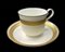 Willeroy & Boch, Heinrich, W.Germany, Mod. Gold Brocade, 1989 Elegante servizio di piatti e caffe' in porcellana composto da: Zuppiera, Caffettiera, salsiera con piatto, lattiera, zuccheriera, 3 piatti da portata , 24 piatti piani, 11 piatti fondi, 10 piatti frutta/dolce, 12 tazzine con piattino.
