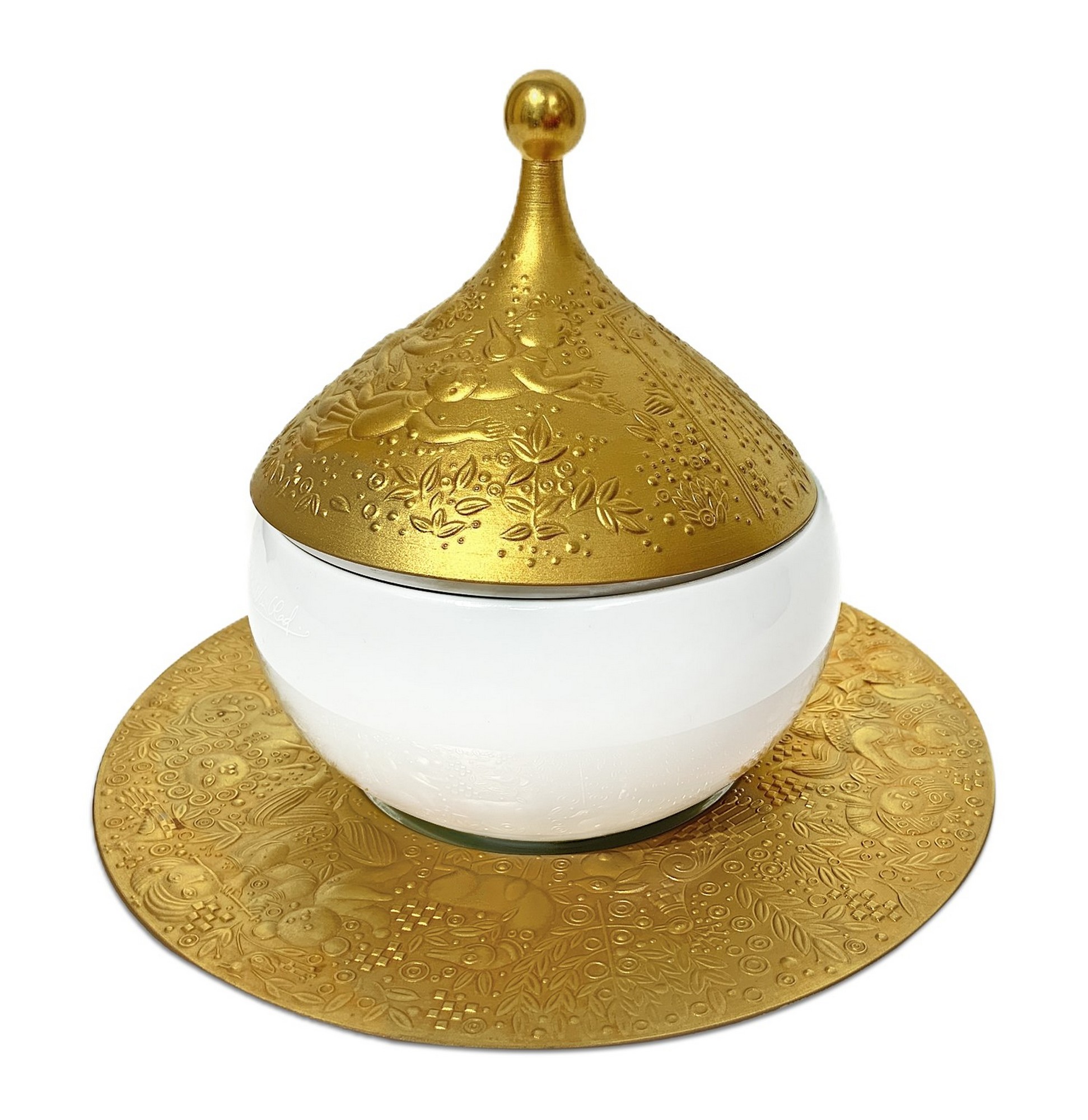 Rosenthal (1879) - Zauberflöte, zuccheriera ”Il flauto magico” , 20° secolo h zuccheriera 15, b piattino 19 cm piattino in porcellana bianca con rivestimento prezioso in oro.