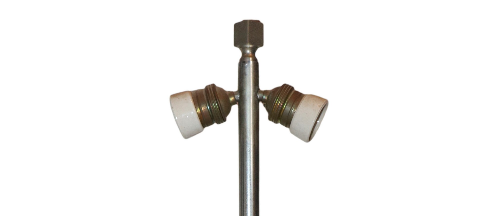 Romeo Rega - Lampada con struttura in metallo cromato e corpo a guida di sfera in plexiglass, 60's