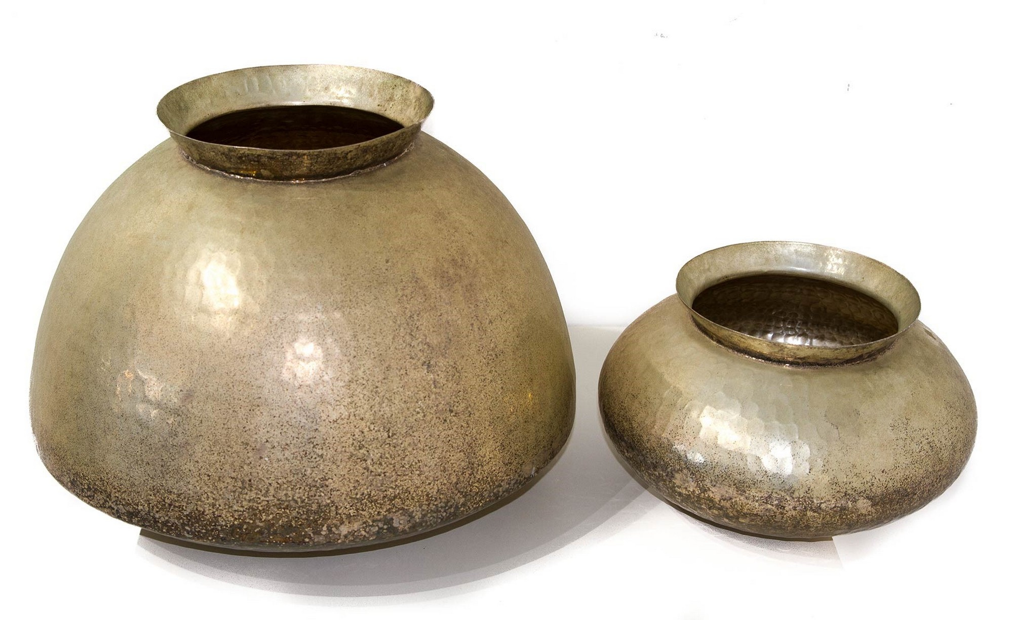 Gervasoni. Gruppo di due contenitori in metallo martellato. Cm 35x40, 20x30 Gervasoni. Gruppo di due contenitori in metallo martellato. Cm 35x40, 20x30