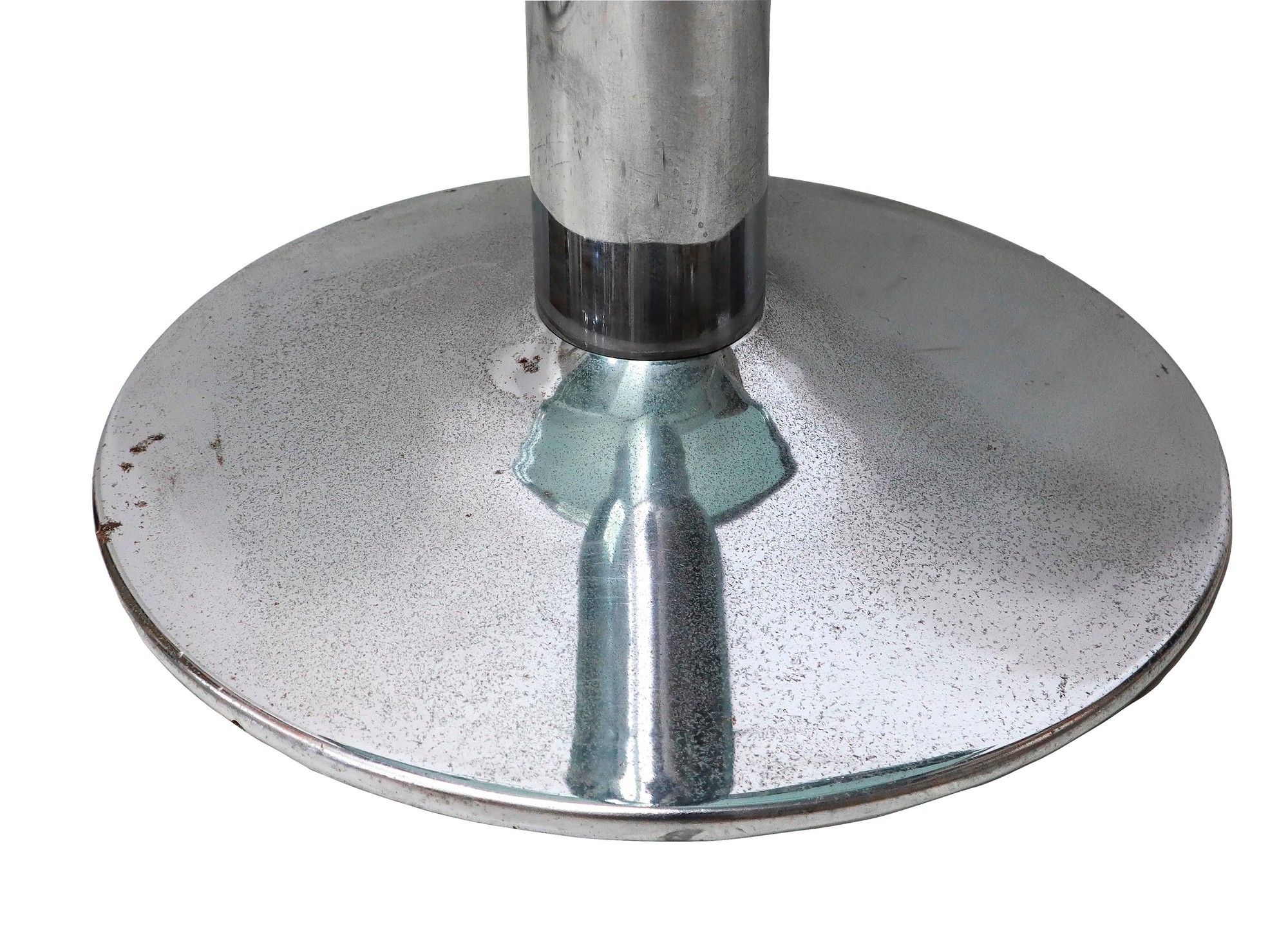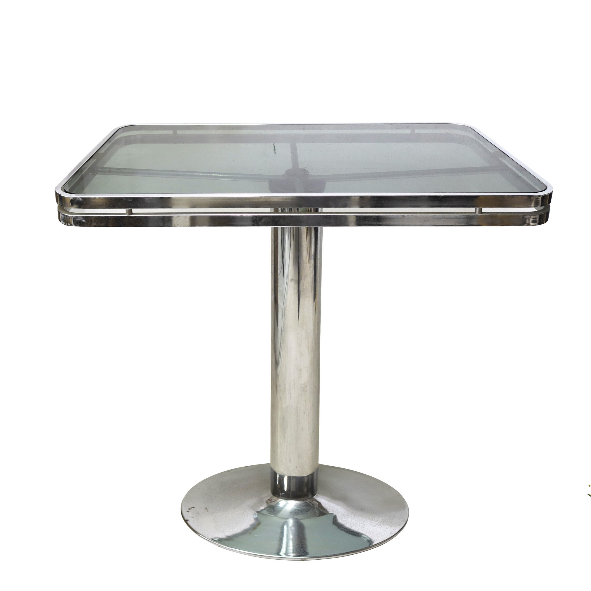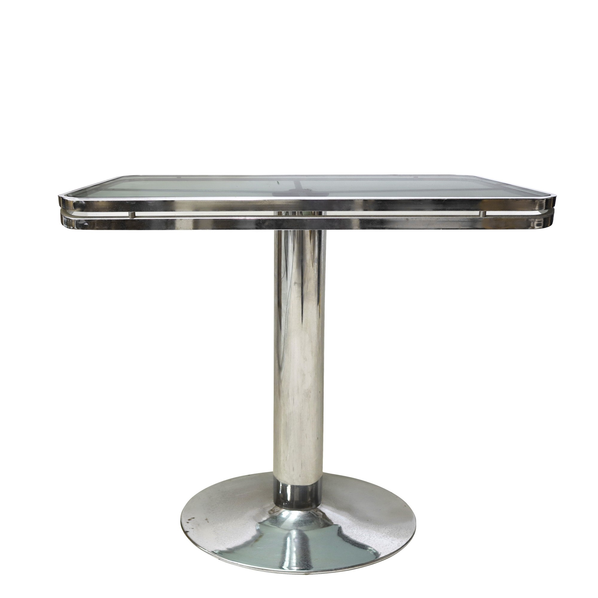 Prod. Allegri - Tavolino console, struttura in acciaio e vetro, 70's Segni di ossidazione, sbeccatura al piano in vetro.