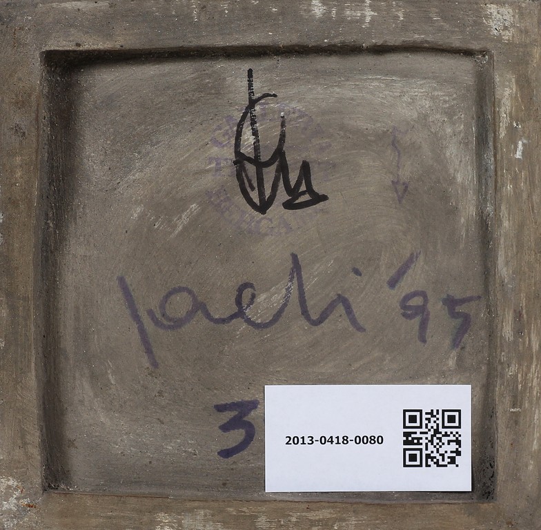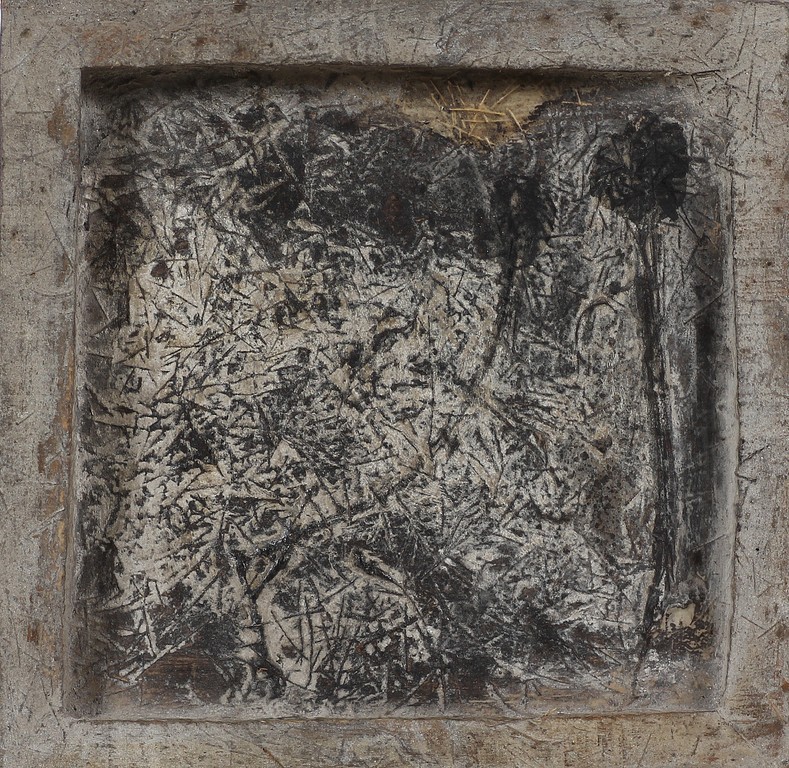 GAETI VALERIO (n. 1951) Senza titolo. Tecnica mista su tavola. Cm 19,00 x 19,00. Al retro firma e timbro Galleria Transit di Bergamo.