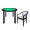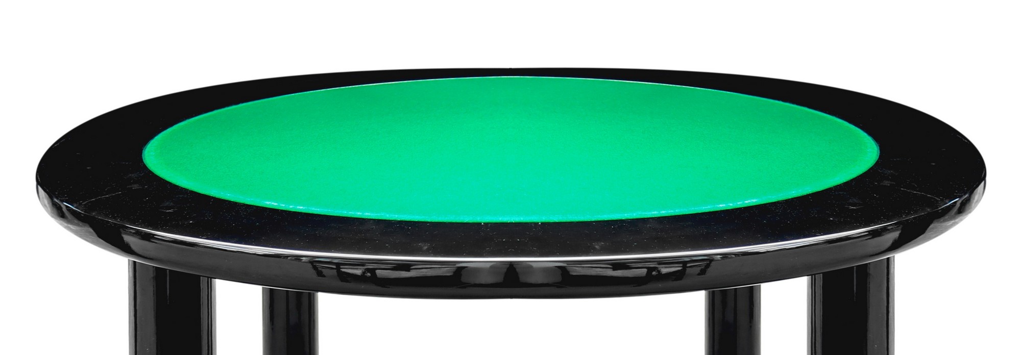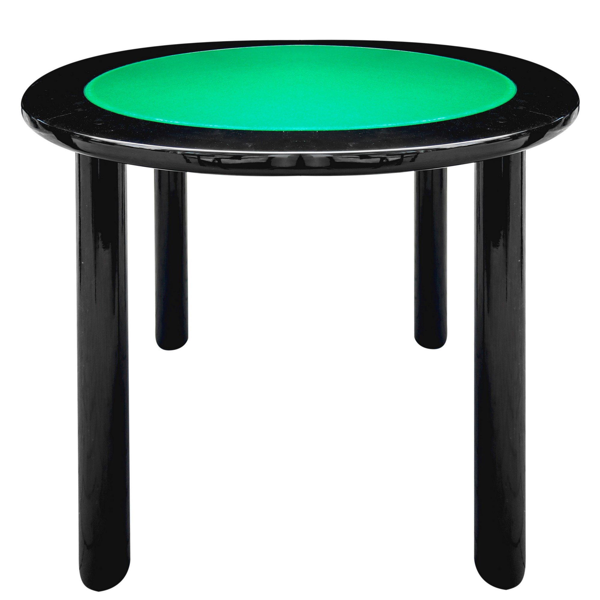 Tavolo da gioco laccato nero bifacciale con tappeto verde con 4 sedie laccate con tapezzeria
