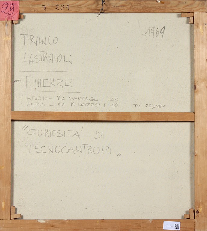 LASTRAIOLI FRANCO (n. 1931) Curiosità di tecnocantropi. 1969. Olio su tela ....