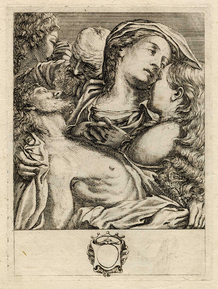 Camillo Procaccini [attribuito a], La lamentazione. 1600 ca. Acquaforte. mm 211x158. Ottima impressione su carta vergellata sottile priva di filigrana. P. Bellini, Camillo Procaccini, in I quaderni del conoscitore di stampe, 24, Milano novembre-dicembre 1974, p. 13, n. 8. / L. Malaspina di Sannazaro, Catalogo di una raccolta di stampe antiche..., 1824, II, p. 206. (1)