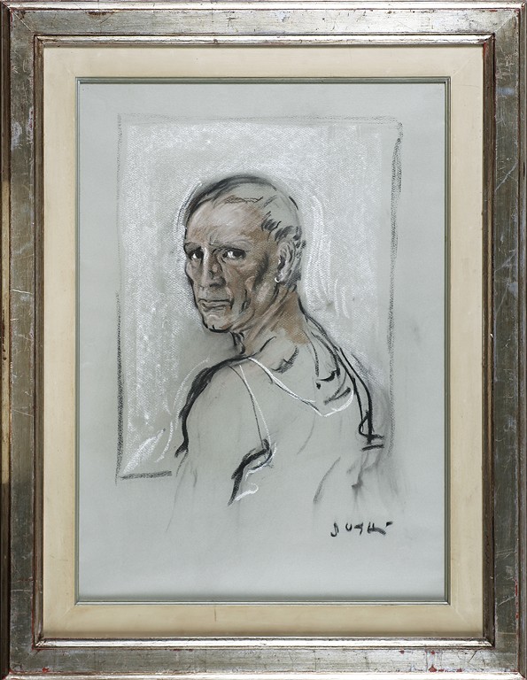 SUGHI ALBERTO (n. 1928) Figura virile. Tecnica mista su cartone. Cm 50,00 x 70,00. Firma in basso a destra. Autentica dell'artista su fotografia. Cornice presente
