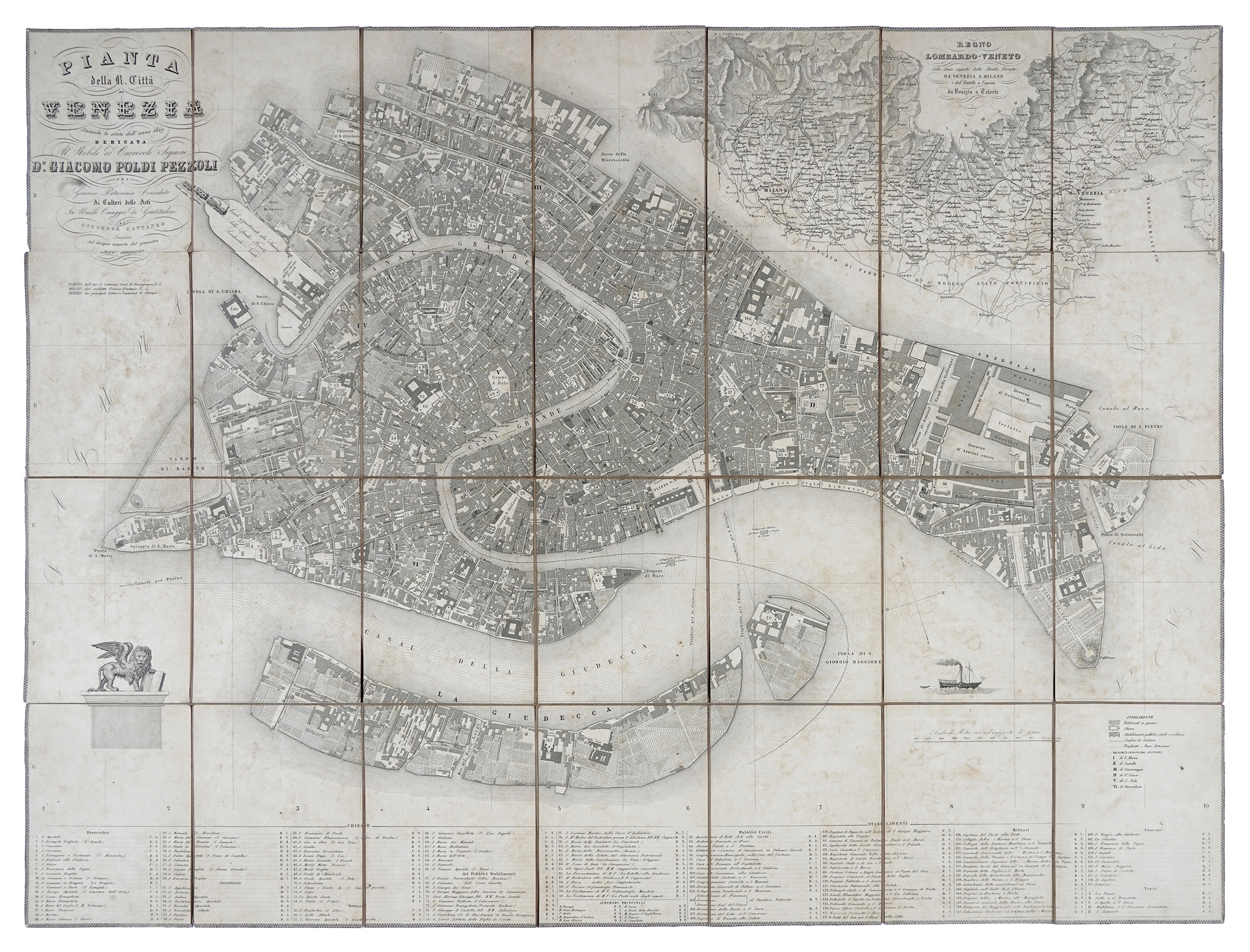 Marco Perissini geometra / Giuseppe Cattaneo incisore, Pianta della R. città di Venezia secondo lo stato del anno 1849, dedicata al nobile ed onorevole Signore Dr Giacomo Poldi Pezzoli…