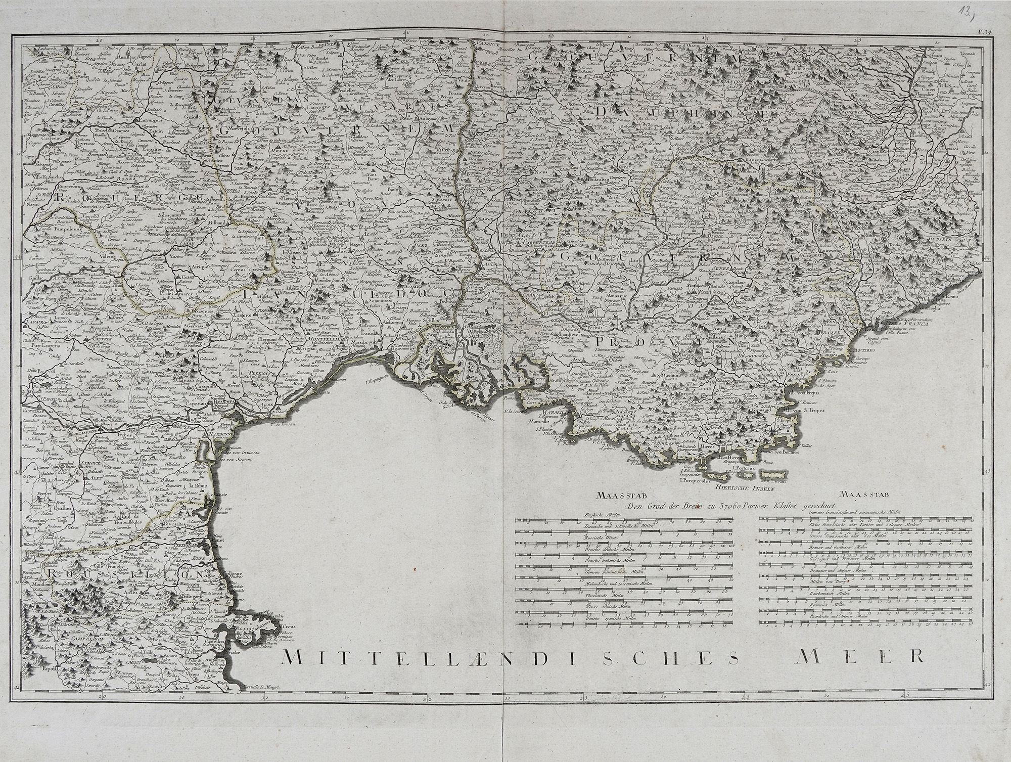 Louis Capitaine, Carte générale de la France [en 180 feuilles] Comprenant la détermination de toutes les Communes, les Routes de Poste, les Rivières Navigables et divisée par départements, arrondissements communaux et Justice de Paix : feuille n° 5 et feuille n° 9 Paris: rue Serpente n°17, 1810 ca. Incisione in rame. mm 600x920. Foglio: mm 637x960. Carta dell'Île-de-France e di Borgogna e Saone. SI AGGIUNGE: Anonimo. Carta del Golfo del Leone e della costa da San Remo a Torroella de Mongri in Catalogna. Edizione tedesca. Incisione in rame. mm 545x Foglio: mm 610x775. (3)
