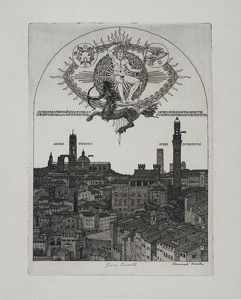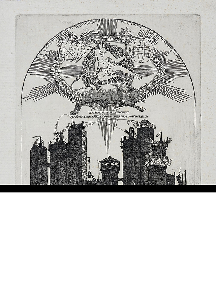 Benvenuto Disertori, La serie dei 3 Pianeti. 1924-48. 1) Il pianeta Giove. 1924. Acquaforte e bulino. mm 373x274. Foglio: mm 500x410. bellini-alberti, 44. Firmata a penna e inchiostro di china in basso a destra e titolata a penna a sfera blu al centro. 2) Il pianeta Venere. 1924. Acquaforte e bulino. mm 407x294. Foglio: mm 485x366. bellini-alberti, 45. Firmata a penna a sfera in basso a destra, titolata al centro e "(avanti lettera)" in basso sinistra. 3) Il pianeta Mercurio. 1947-48. Acquaforte e bulino. mm 414x288. Foglio: mm 500x355. bellini-alberti, 61. Firmata a penna e inchiostro di china in basso a destra. Al verso timbro dell'artista e titolata. Provenienza: Eredi Disertori. Come si apprende da numerosi passi del carteggio di Disertori con C. Olschki, era intenzione dell'artista completare la serie con i pianeti rimanenti. (3)
