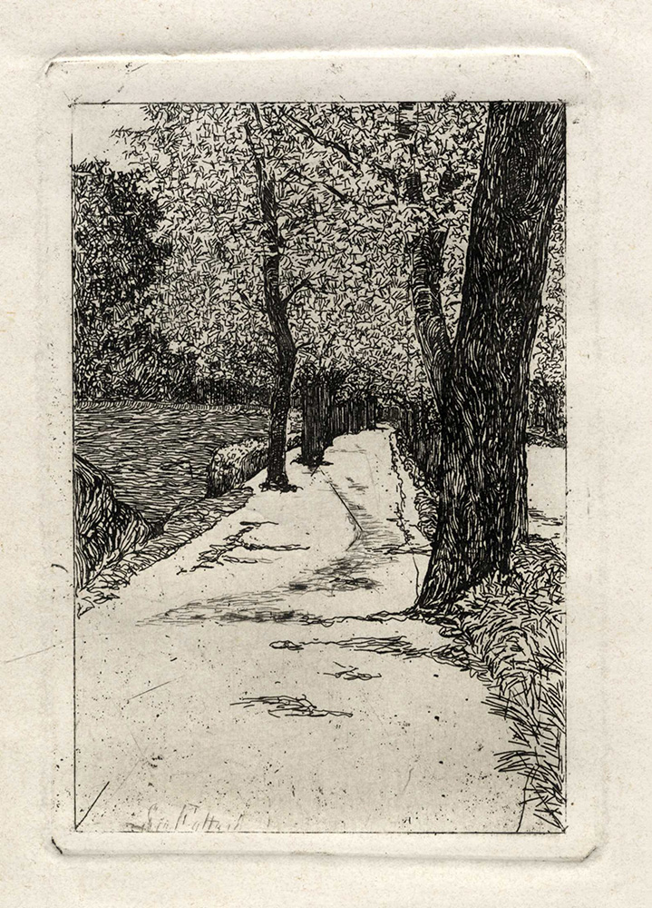 Giovanni Fattori, Le Cascine. Acquaforte su zinco. mm 168x114. Foglio: mm340x260. baboni-malesci,, XXXII. Firma in lastra in basso a sinistra.