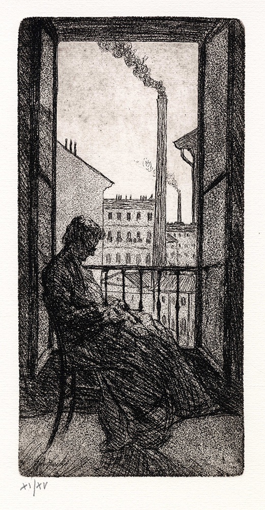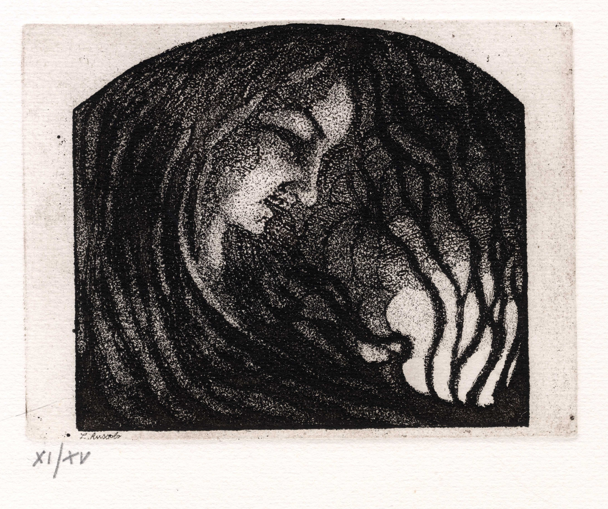 Luigi Russolo, L'opera grafica di Luigi Russolo. 1977. Movimenti di donna, Profumo, Donna che legge, Donna al balcone, Tetti e Periferia. Incisioni all'acquaforte. mm 113/250x70/170. Fogli: mm 500x350 cad. Tutte numerate a matita a numeri romani in basso a sinistra e molte firmate in lastra. Ristampa delle Edizioni Ceal curata da Franco Maffina, del quale è presente la garanzia al verso di ogni foglio insieme ai dati di ogni opera. Le lastre di queste opere sono state realizzate tra il 1909 e il 1911. (6)