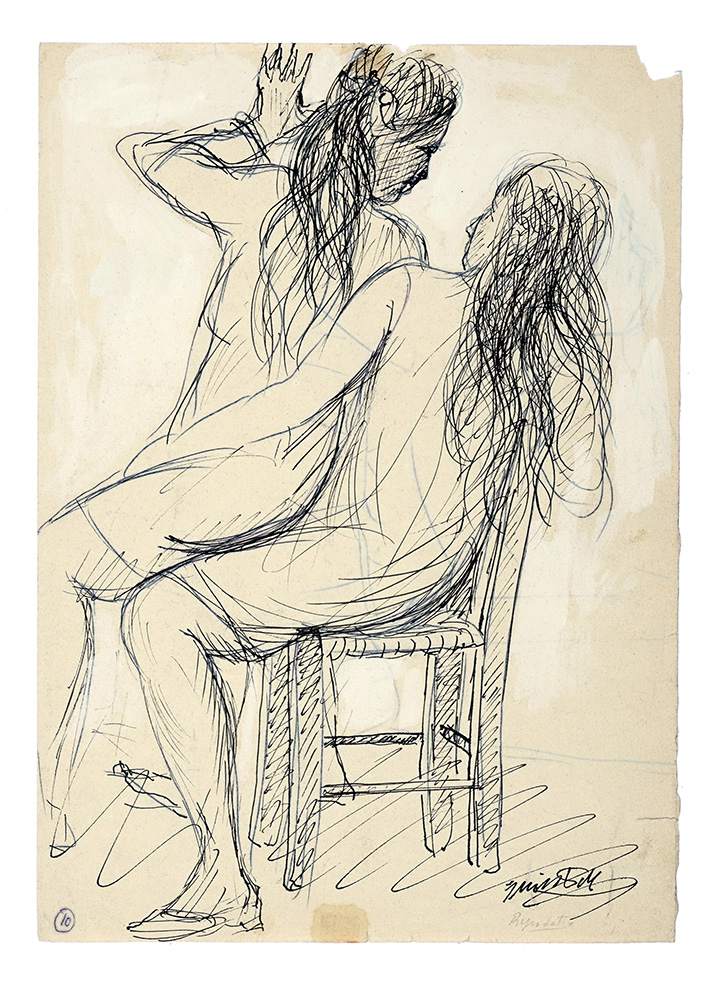Quinto Martini, Nucleo composto di 40 disegni su 39 fogli. 1940-85. Acquerello, carboncino, matita, pennarello, penna e inchiostro di china su carta. mm 345/380x250/320. Tutti i disegni sono firmati, molti datati, alcuni titolati o variamente iscritti. Meraviglioso e raro nucleo di opere dell'artista che ripercorre quasi tutta la sua vita artistica e che proviene dal Professor Brenci, suo insegnante all'Accademia. I disegni affrontano i soggetti delle scene quotidiane, del nudo femminile e dei ritratti. (39)