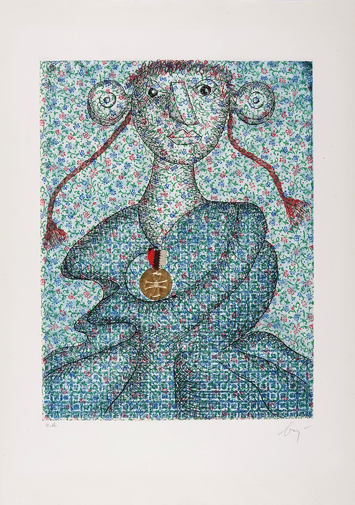 Enrico Baj, Generale. Acquatinta e collage su carta. mm 495x375. Foglio: mm 705x500. Firma a matita in basso a destra ed "E. A." in basso a sinistra. (1)