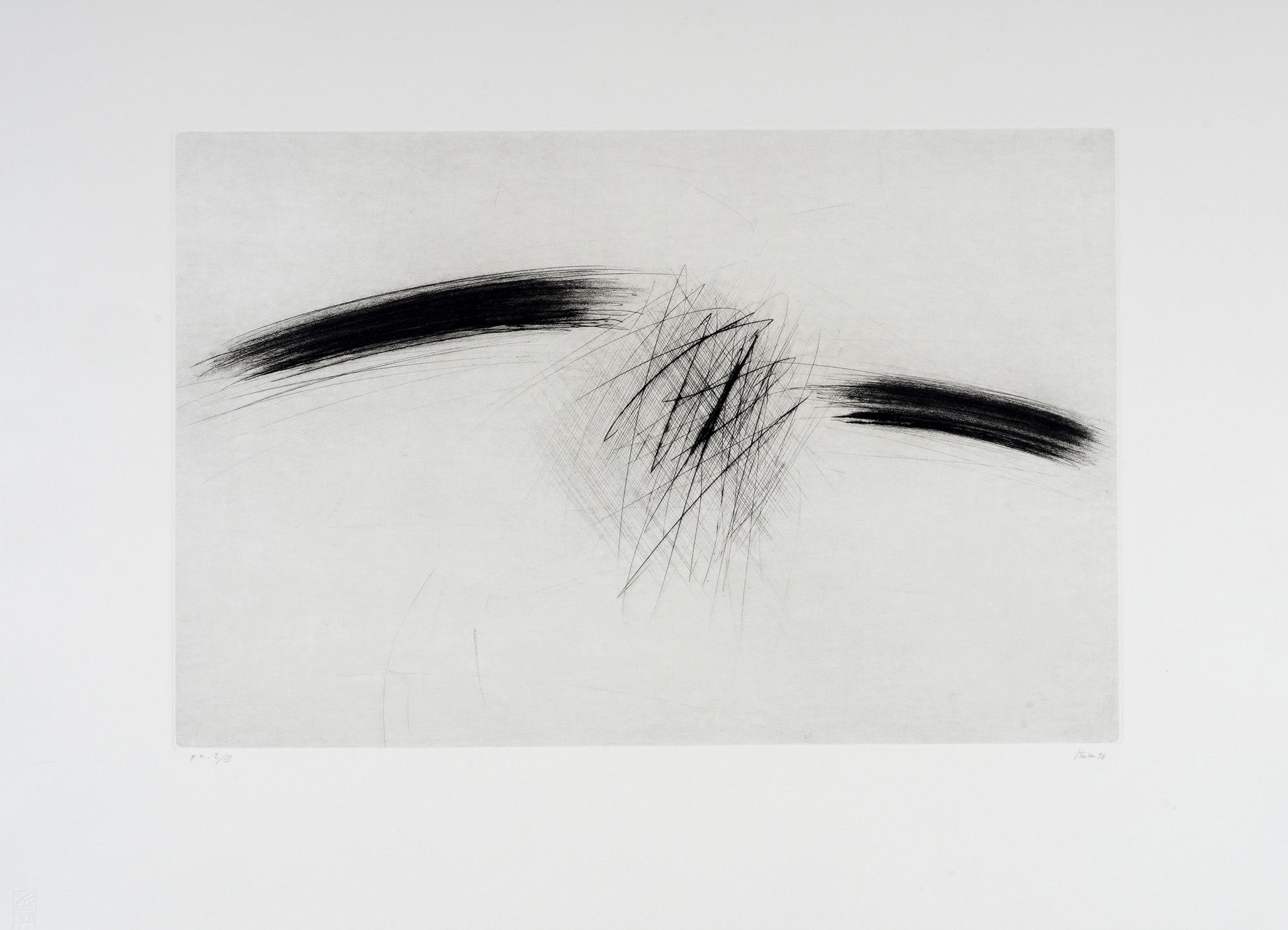 Guido Strazza, Lotto composto di 2 incisioni. 1998-2002. 1) Archi. 1998. Puntasecca e rotella. mm 322x495. Foglio: mm 500x695. appella, 922. Firmata e datata a matita in basso a destra, tiratura a numeri romani in basso a sinistra. Timbro a secco de "Il Bulino, Roma" in basso a sinistra. Es. I/III. 2) Gesto e segno. 2002. Acquaforte, puntasecca, rotella e acquatinta. mm 497x290. Foglio: mm 695x500. appella, 1040. Firmata e datata a matita in basso a destra, tiratura in basso a sinistra. Timbro a secco de "Il Bulino, Roma" in basso a sinistra. Es. 1/20. (2)
