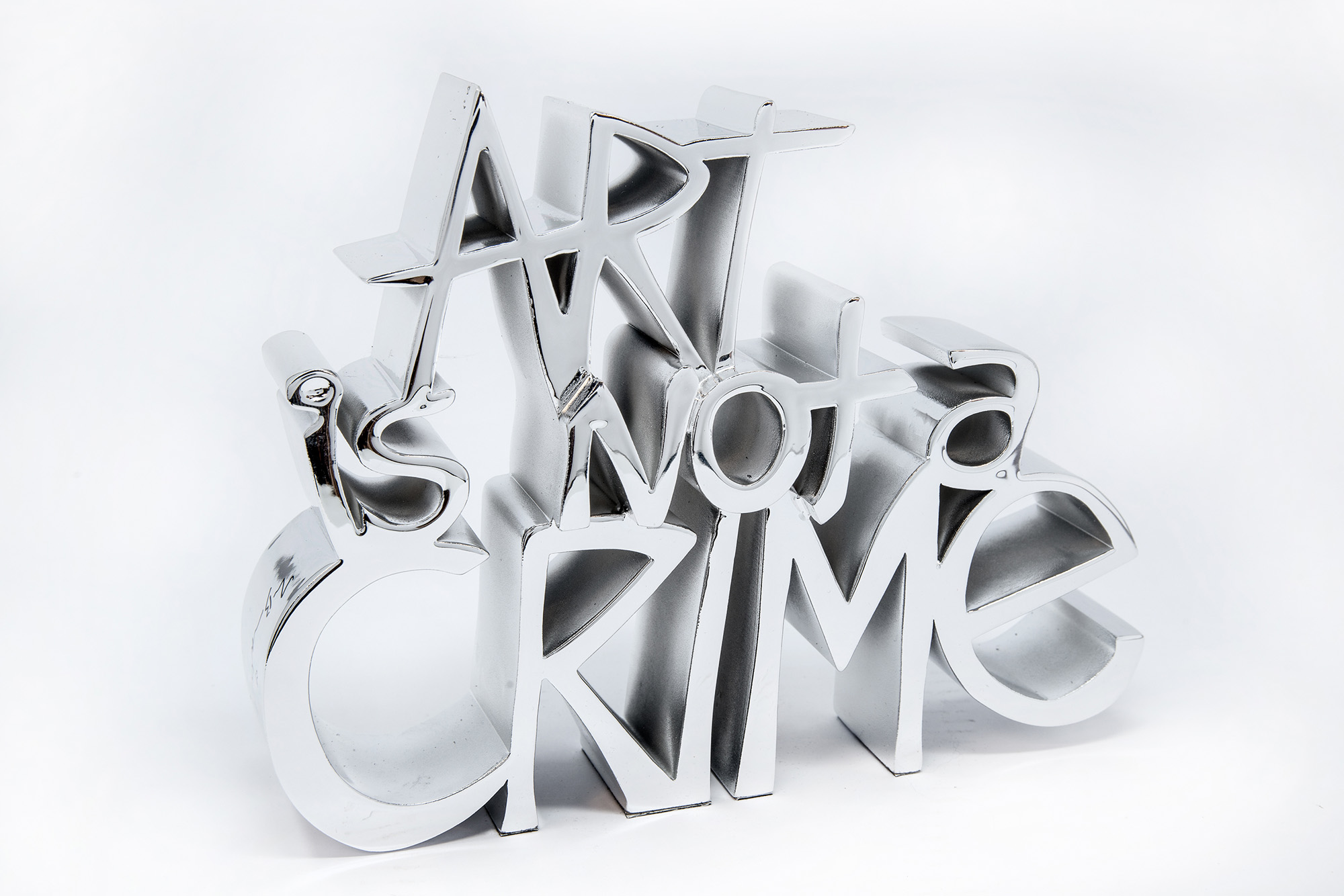 Mr. Brainwash [pseud. di Thierry Guetta], Art is not a crime (Silver). 2021. Resina colata a freddo. cm 18x21x5,5. Firmato e datato a pennarello nero al lato sinistro e numerato in basso a destra. Es. 77/95. (1)