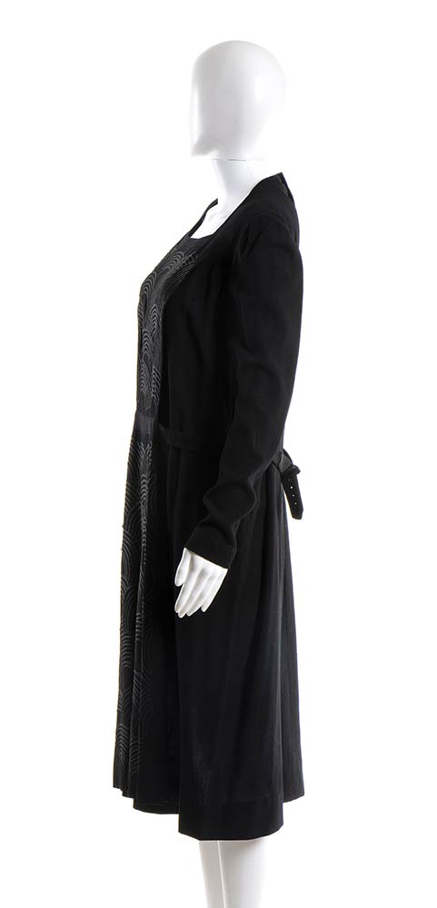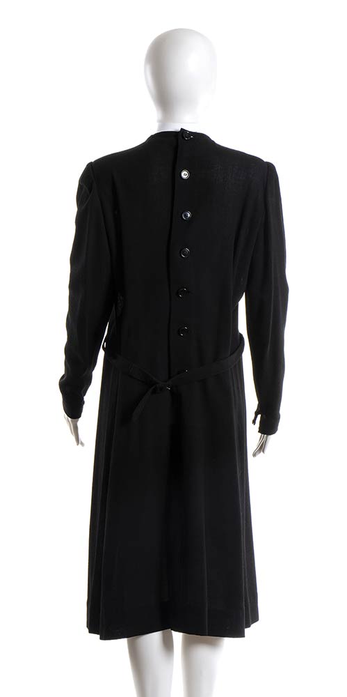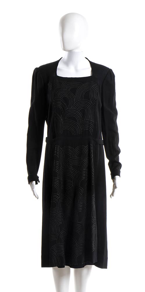 abito Abito anni 40 in crepe nero con applicazioni frontali, grado di condizione generale B