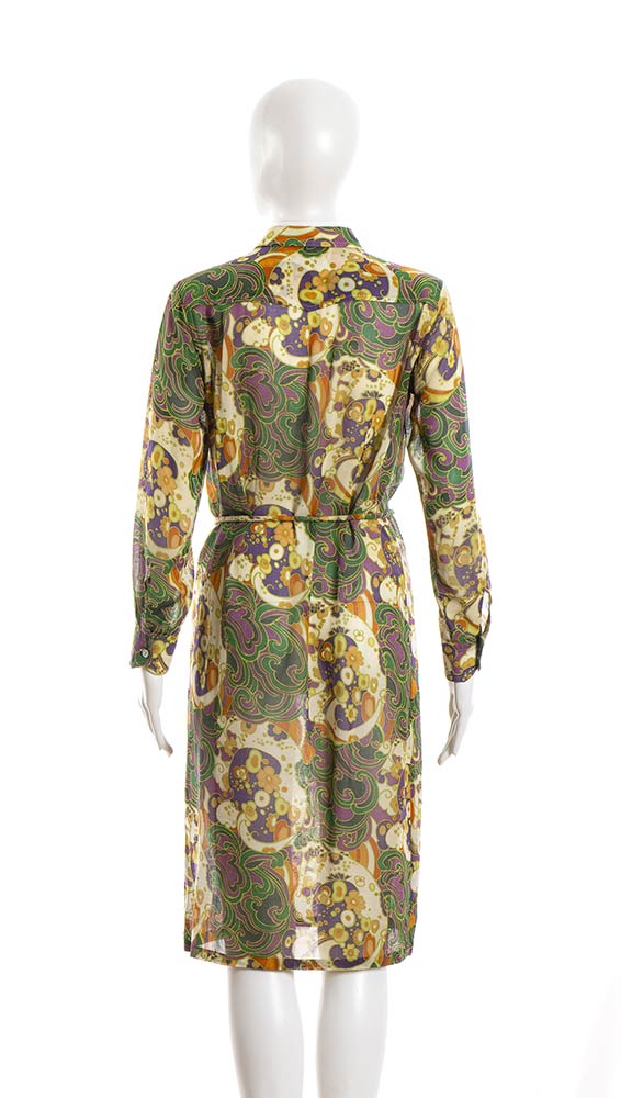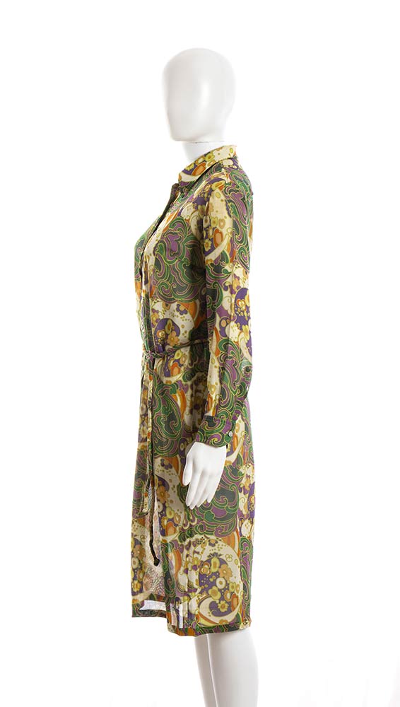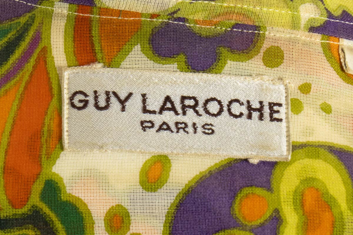 Guy LarocheAbito Abito anni 70 Guy Laroche in tessuto di viscosa fantasia, cintura, grado di condizione generale B