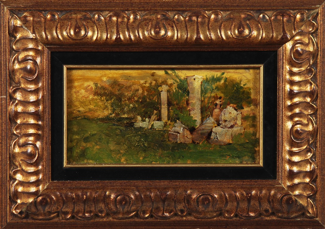 Lotto 285 | ARTISTA DEL XIX SECOLO Paesaggio con ruderi. Olio su tavola. Cm 22,00 x...