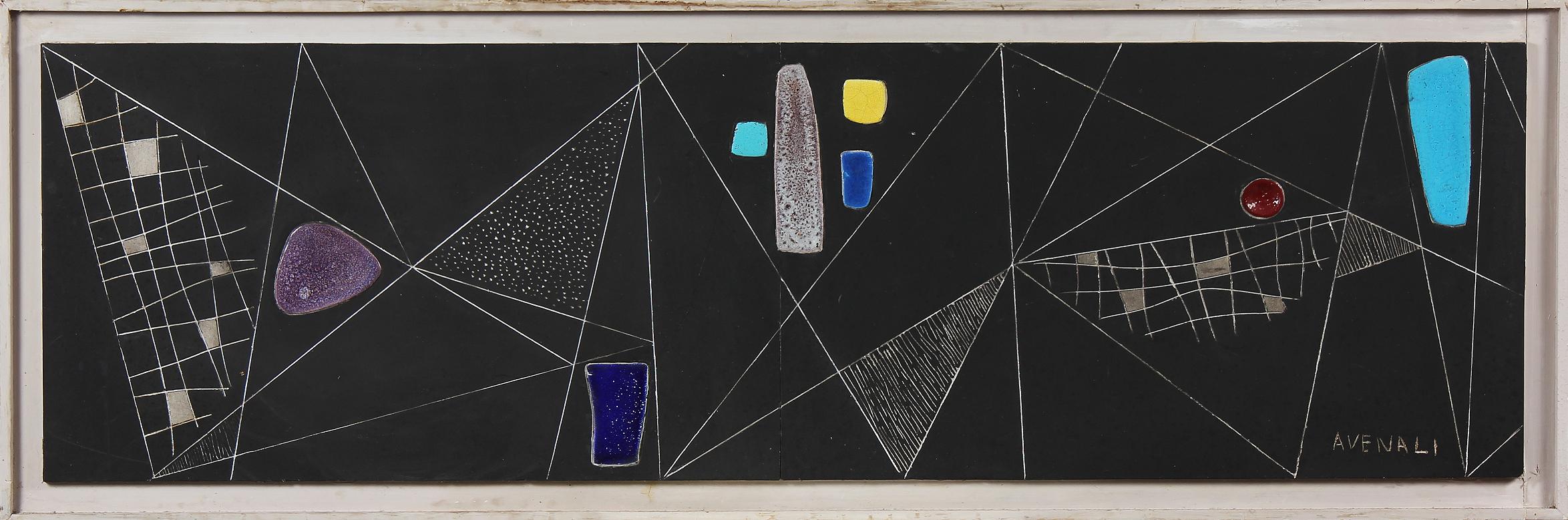 AVENALI MARCELLO (1912 - 1981) Senza titolo. Tecnica mista su tavola. Cm 42,00 x 140,00. . Cornice presente