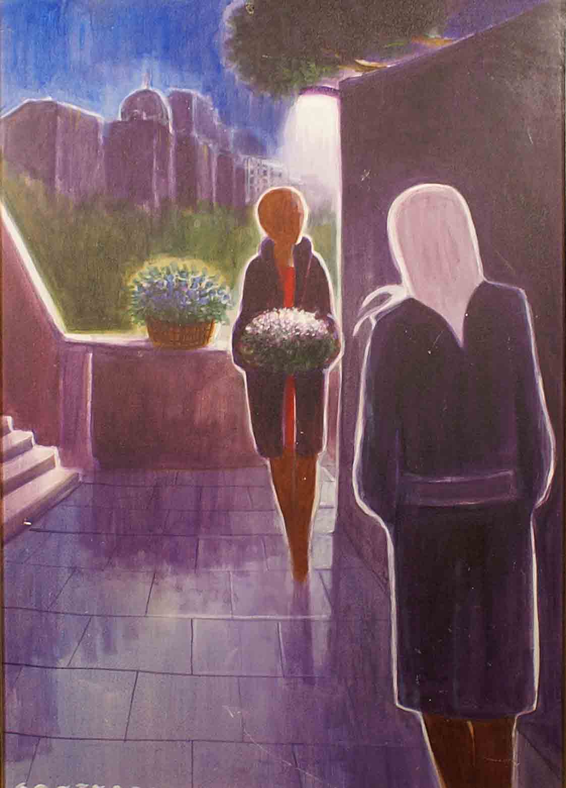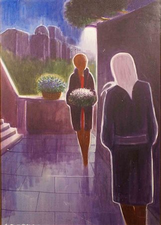 Eliano Fantuzzi (Modena 1909 - Verona 1987), "Figure femminili", olio su tela, cm. 70x50, firmato in basso a sinistra e sul retro.