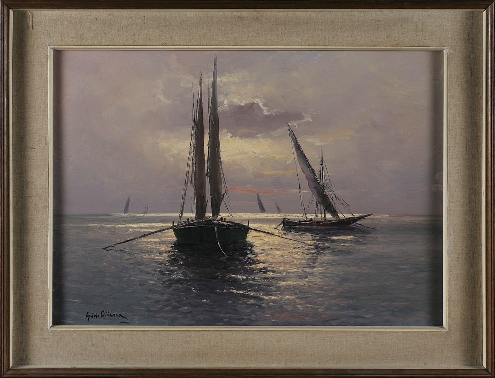 ODIERNA GUIDO (1913 - 1991) Marina. Olio su tela . Cm 70,00 x 50,00. Firma in basso a sinistra. Cornice presente
