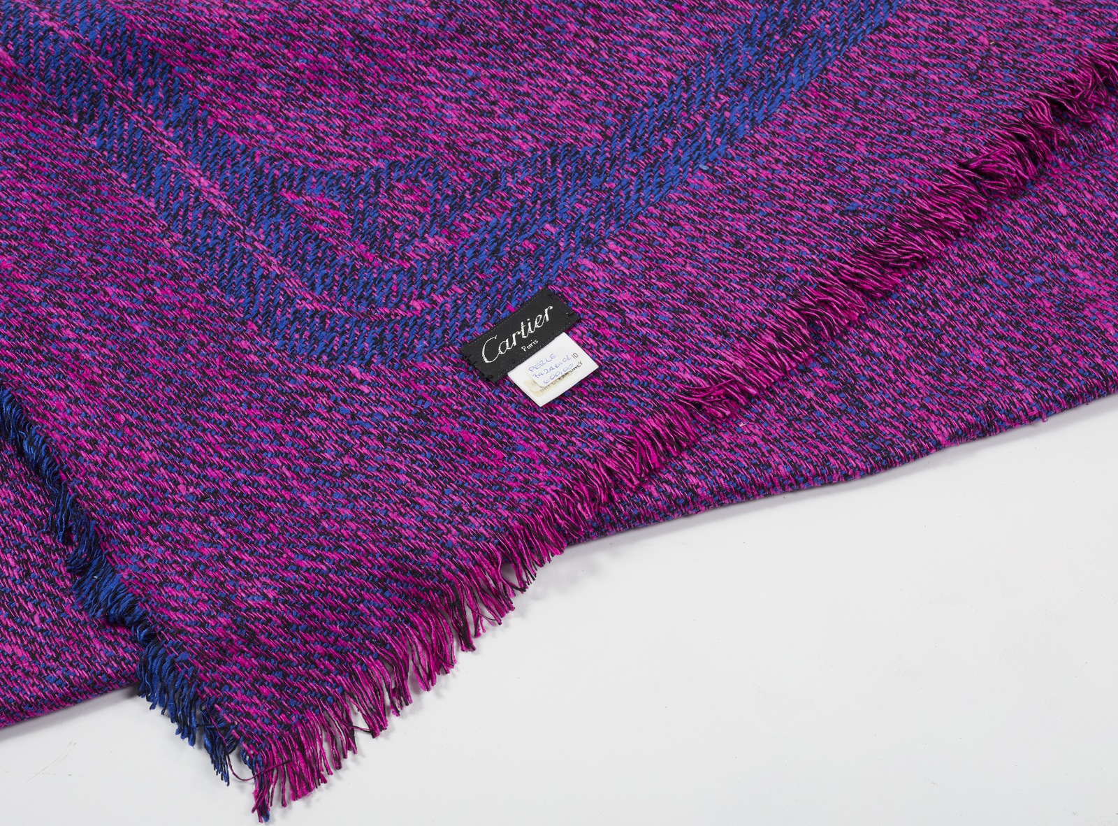 Lotto 55 | CARTIER - Scialle tweed blu e rosa.