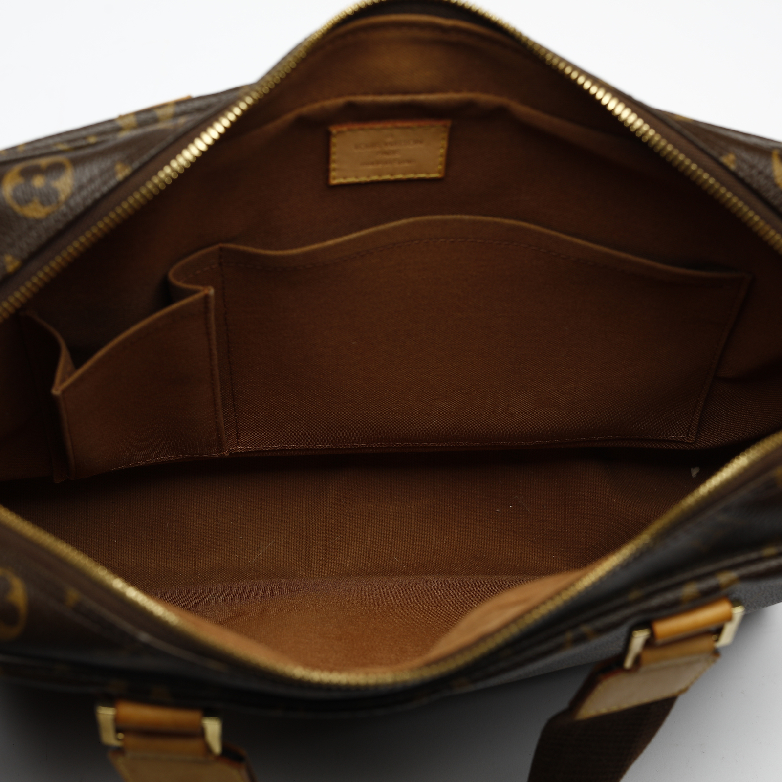 VUITTON LOUIS Borsa Bosphore. Pelle. Cm 31,00 x 25,00 x 16,00. Borsa a mano modello Bosphore, in tessuto monogram e dettagli in pelle di vacchetta, due taschine semplici all'interno, hardware dorato, logo e codice modello CA 1077, Made in France.