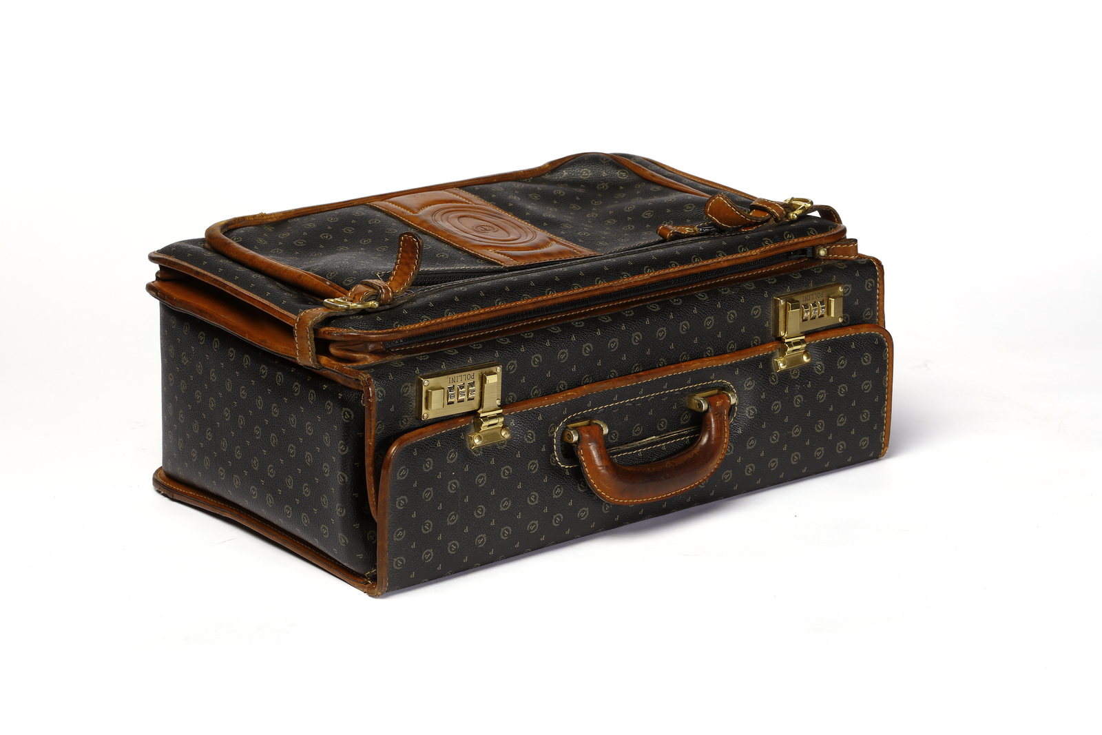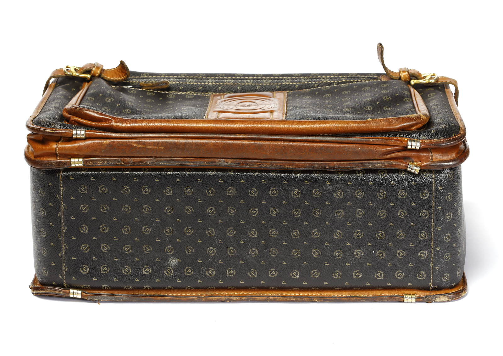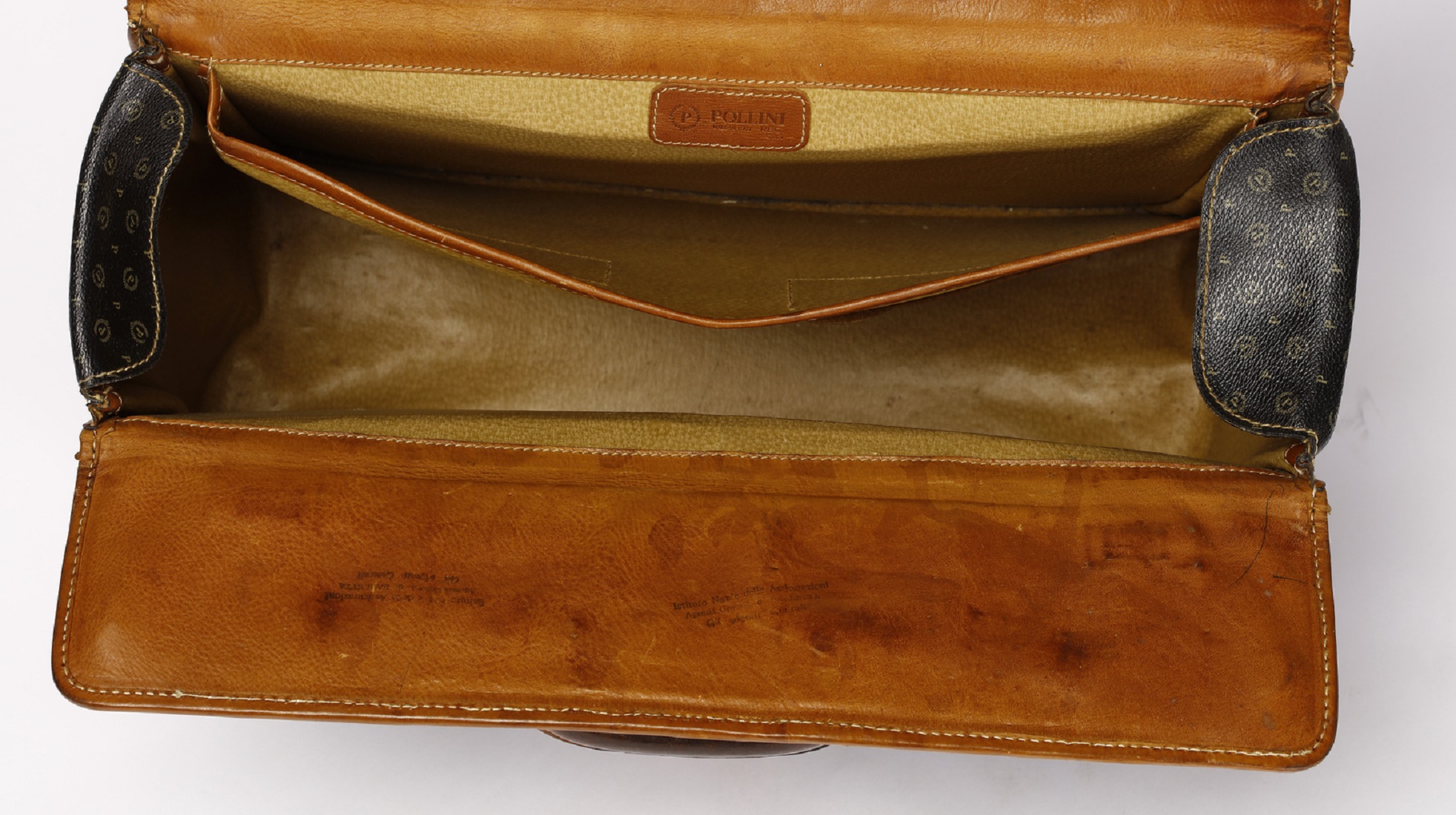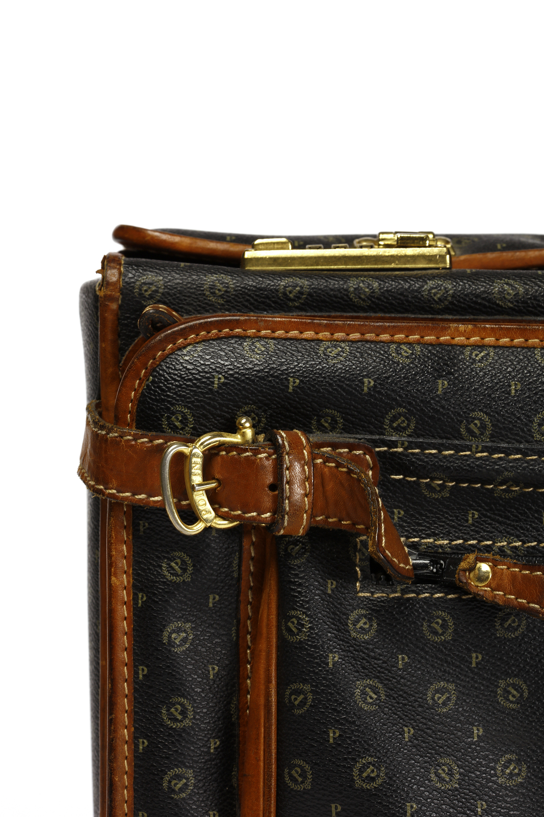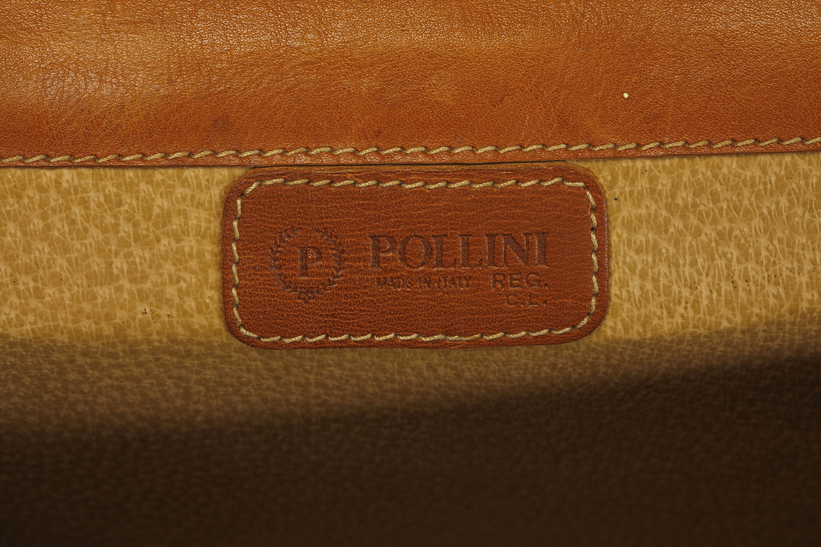 POLLINI Borsa Pollini. Pelle. Cm 47,00 x 35,00 x 20,00. Classica borsa 24 ore con pelle stampata monogram Pollini, elementi dell'hardware dorato, dettagli in pelle color cuoio a contrasto. Patina.